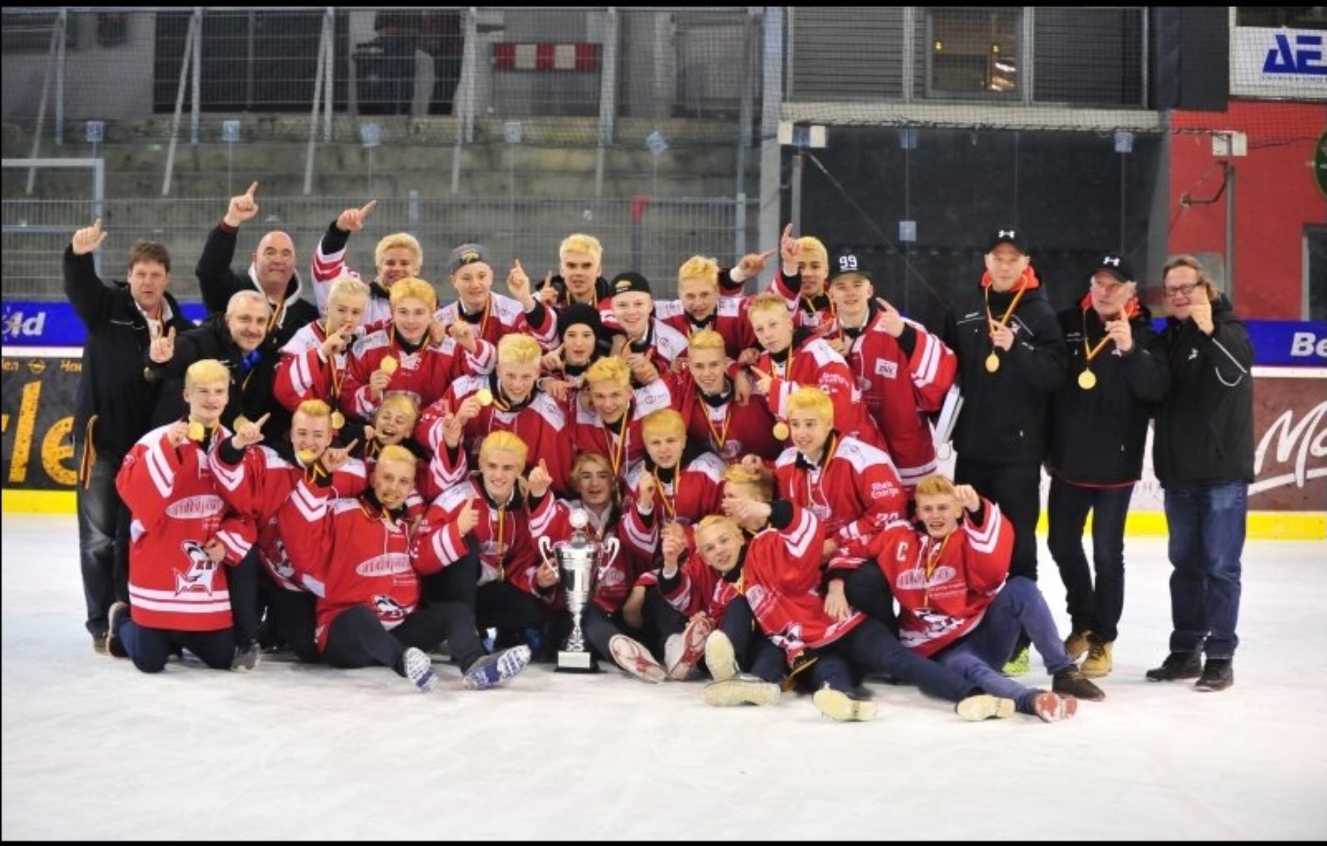 Als KEC-Goalie Kevin Pfeifer auch den dritten Penalty der Eisbären Juniors Berlin parierte, kannte der Jubel beim U16-Team der Haie am Samstag keine Grenzen mehr! Innerhalb von wenigen Sekunden bildeten die Spieler mit ihren Trainern und Betreuern eine Jubeltraube. Nach dem 5:4-Erfolg nach Penaltyschieen steht der Kölner EC schon vor dem letzten Spieltag der Endrunde als Deutscher Meister fest! Vier Spiele – vier Siege: eine phantastische Bilanz! Es ist die dritte Meisterschaft in der Geschichte des KEC-Nachwuchses. Zuvor gewannen die Schüler 2006 und ein Jahr später die DNL-Mannschaft den Titel. „Das ist historischer Tag für uns“, kommentierte Rodion Pauels, Geschäftsführer des Haie e.V., den Erfolg.