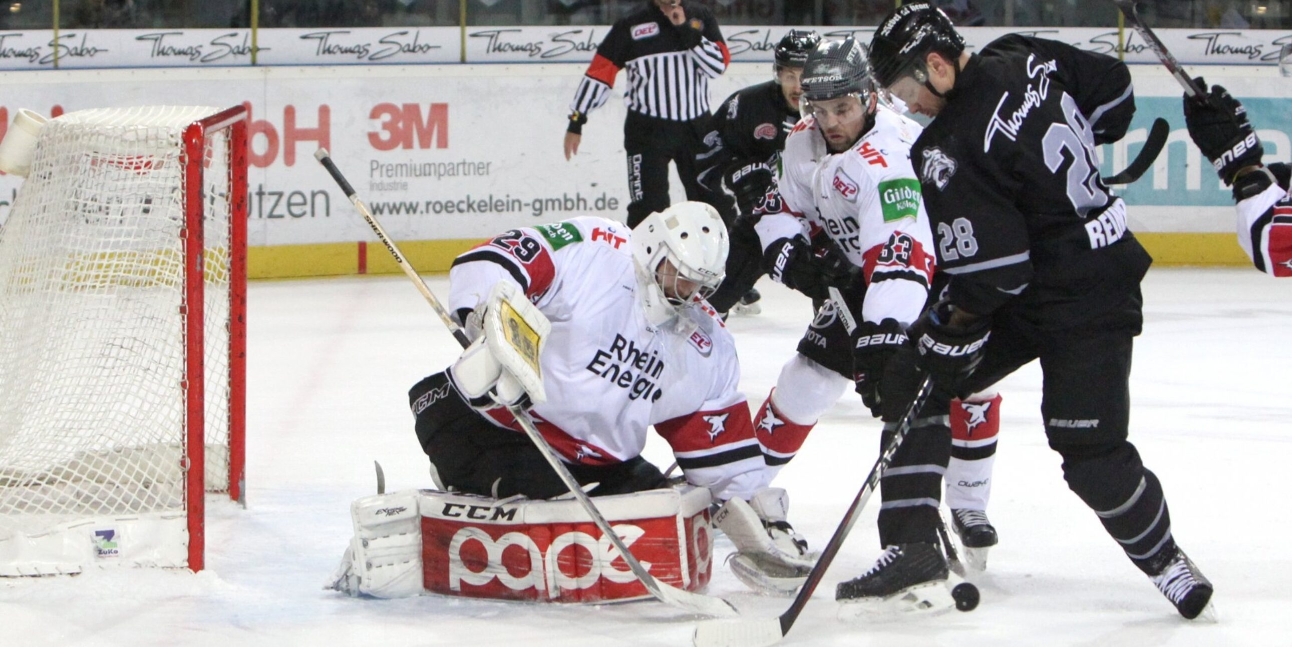 Die Kölner Haie müssen sich bei den Thomas Sabo Ice Tigers mit 1:2 geschlagen geben. Sebastian Uvira erzielt den Treffer für den KEC.