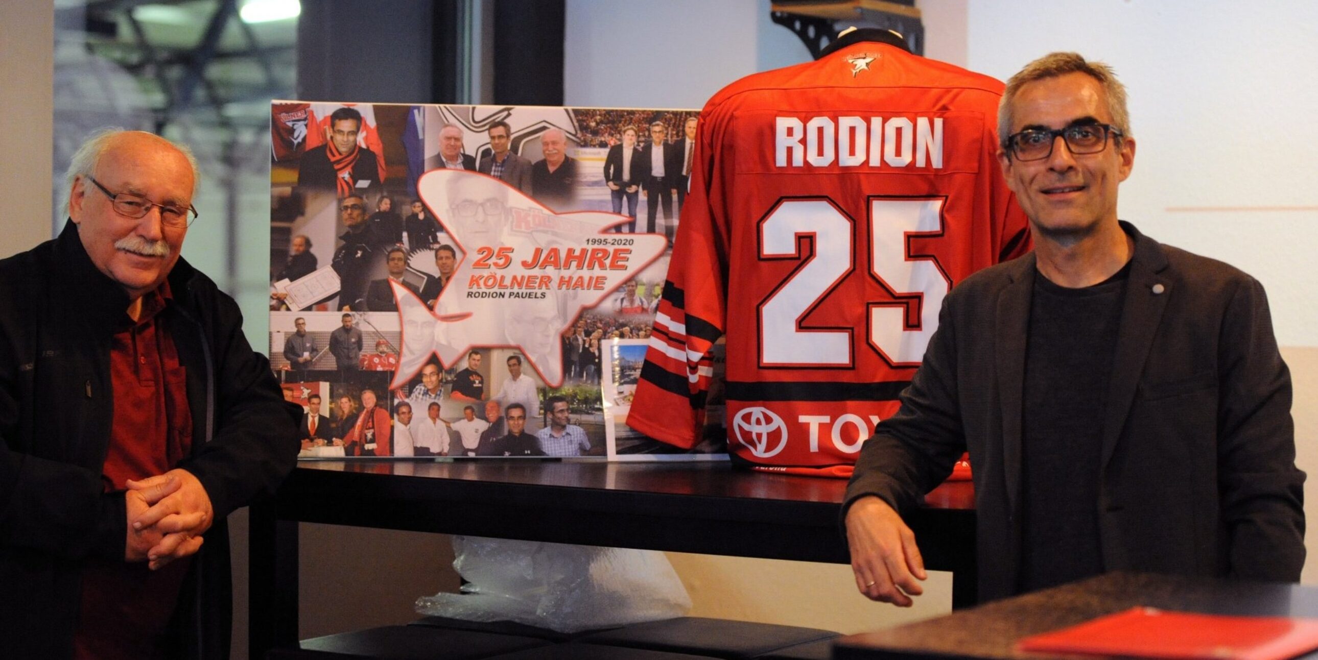 Auch Haie-Geschäftsführer Philipp Walter fand wichtige Worte: „Unsere Glückwünsche zu diesem Jubiläum und unser Dank sind verbunden mit gröter Hochachtung für Rodions Arbeit. Der auergewöhnliche Erfolg des KEC im Nachwuchsbereich in den letzten Jahrzehnten ist unumstölich mit Rodion Pauels´ Wirken verbunden. Er hat die Junghaie bis heute in herausragender Weise gestaltet und geprägt.“ Neben den beiden hochrangigen KEC-Vertretern waren u.a. auch Haie-Kapitän Moritz Müller – der einst bei den „Junghaien“ unter Pauels trainiert hatte – sowie Haie-Legende Detlef Langemann und Verwaltungsratsvorsitzender Alexander Kirsch unter den Gratulanten.