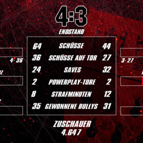 Auch das letzte Drittel war geprägt von einer hohen Intensität – beide Mannschaften schenkten sich nichts. Den ersten Treffer des Schlussabschnitts erzielte Josh Currie im Powerplay nach Vorarbeit seiner Landsmänner Grenier und MacLeod zum umjubelten 3:3 (50.). Leider hatte BHV-Kapitän Urbas – ebenfalls im Powerplay – das letzte Wort an diesem Abend, sodass es nach 60 Minuten bei der knappen 3:4-Niederlage blieb.