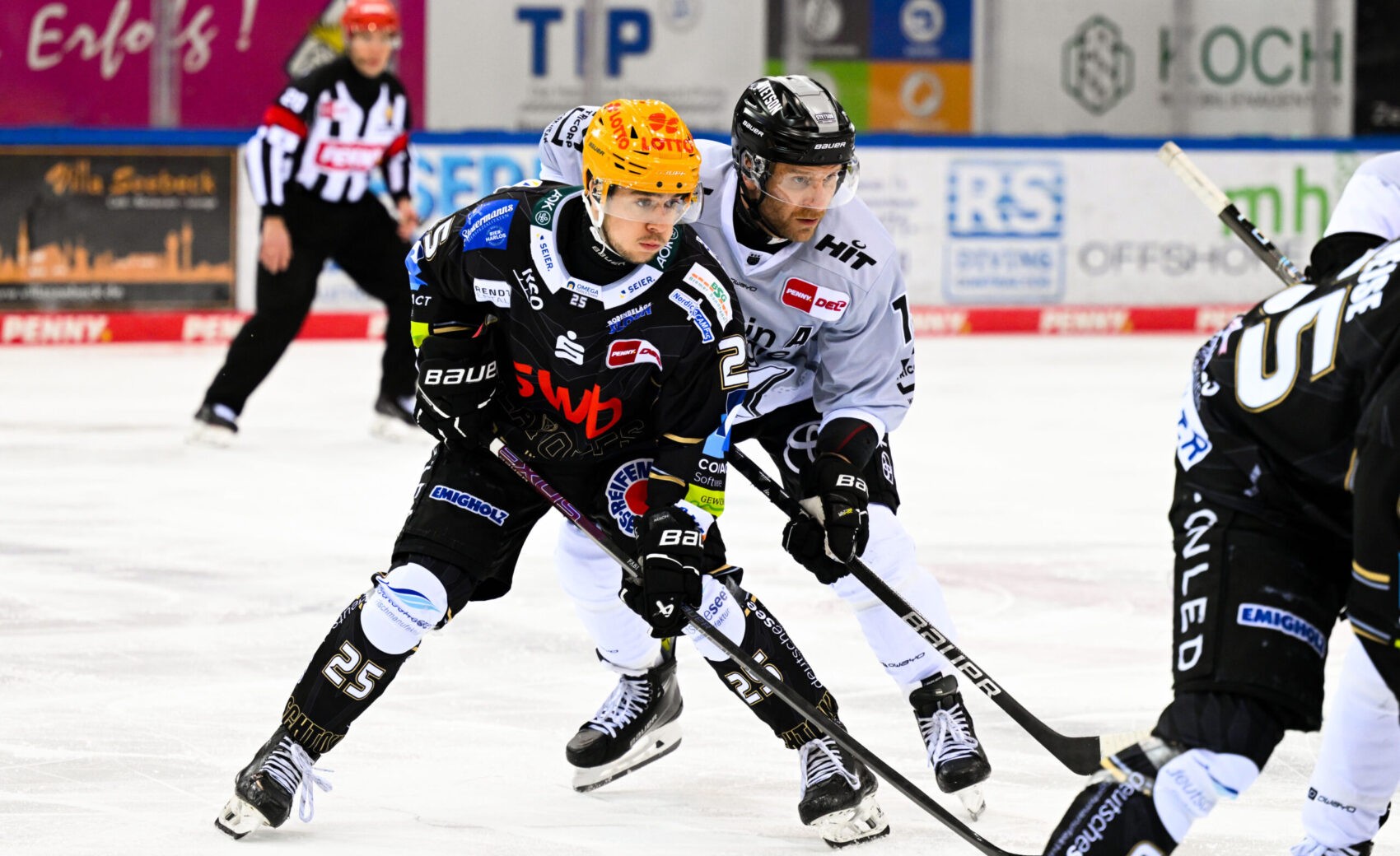 Den besseren Start in das fünfte Spiel der Viertelfinal-Serie zwischen uns und Bremerhaven erwischten die Gastgeber, die uns durch ihren aggressiven Forecheck immer wieder vor Probleme stellten. Während wir in der Anfangsphase nur zu wenigen Entlastungsangriffen kamen, erspielten sich die Pinguins von Minute zu Minute mehr und mehr bessere Chancen. Eine davon nutzte Matthew Abt mit einem Schuss aus zentraler Position und profitierte dabei von ordentlich Verkehr vor unserem Tor – Tobias Ancicka, der erstmals in der Serie für uns startete, hatte keine Sicht und musste den Puck passieren lassen, 0:1 (12.).