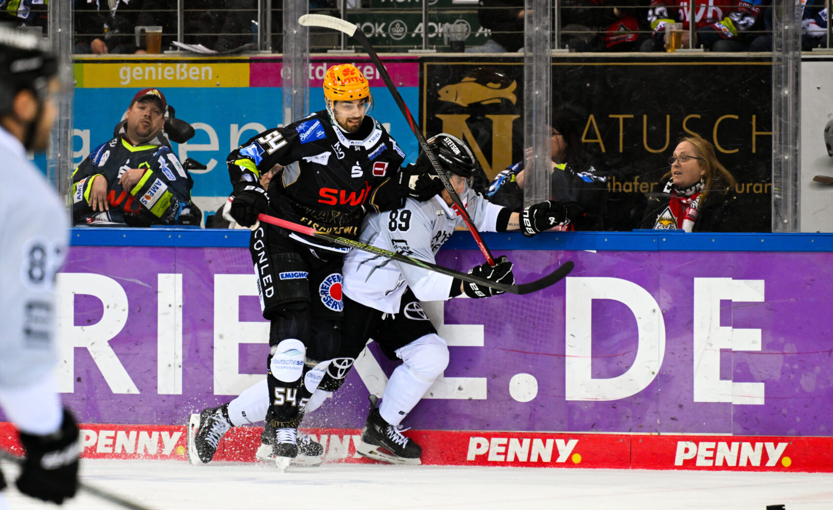 Im zweiten Abschnitt gab unsere Mannschaft den Ton an und konnte sich nach mehreren Versuchen, die noch nicht in Zählbares umgemünzt werden konnten, in der 36. Minute belohnen. Doch zuvor hatte das intensiv bereits geführte Spiel bereits einen kleineren Aufreger – Abt checkte Sennhenn in der neutralen Zone am Kopf (24.), doch die Schiedsrichter schritten bei dieser Aktion trotz Proteste unserer Mannschaft nicht ein. Wir lieen uns davon jedoch nicht beirren und konnten wie beschrieben in der 36. Minute per Penalty Shot ausgleichen. Tyrväinen war auf dem Weg Richtung Gudlesvkis klar gelegt worden, Grenier nahm sich der Sache an und verwandelte zum verdienten Ausgleich.