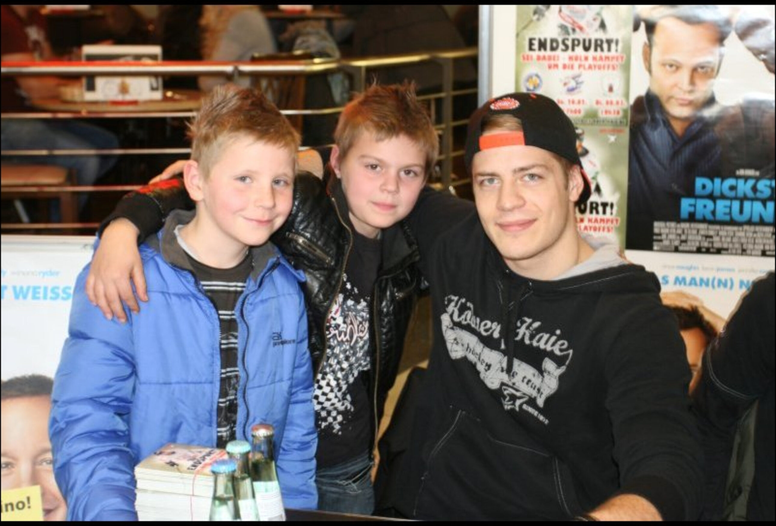 Für 40 Haie-Fans war das ein besonderer Abend. Gemeinsam mit dem Cinedom lud der KEC Anfang der Woche zum gemeinsamen Kino-Besuch mit drei Haie-Spielern. Philip Gogulla, Moritz Müller und Danny aus den Birken lieen sich gemeinsam mit den Fans von der Komödie „Dickste Freunde“ bestens unterhalten. Zuvor gaben die Haie-Spieler Autogramme.