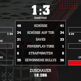 0:1 Fabian Herrmann (Jeglic, Uher) 11. Minute; 0:2 Dominik Uher (Jeglic) 16. Minute; 1:2 Gregor MacLeod (Almquist, Kammerer) 58. Minute; 1:3 Jan Urbas (Kinder) 60. Minute