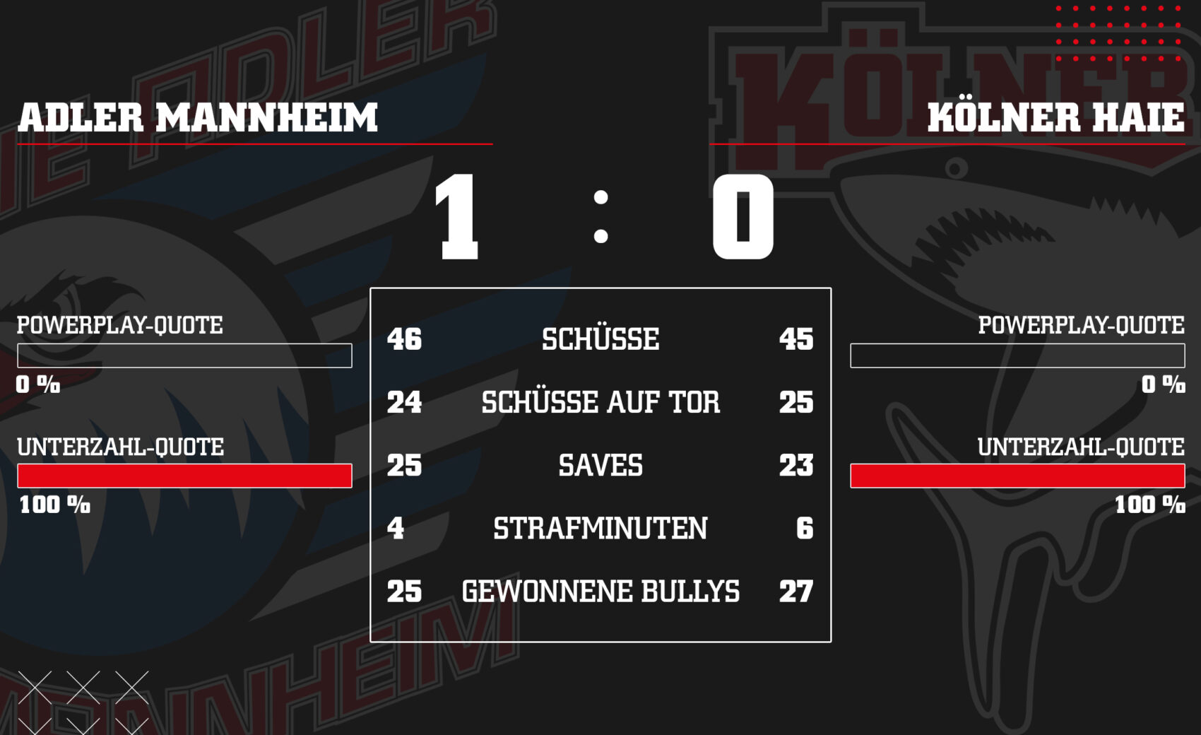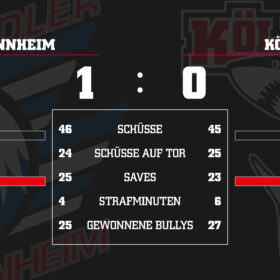 Es sollte einfach nicht sein. Unsere Mannschaft spielt ein starkes Auswärtsspiel bei den Adler Mannheim, schafft es aber nicht, die Scheibe im Tor unterzubringen. So unterliegen wir bei den Adlern denkbar knapp mit 0:1.