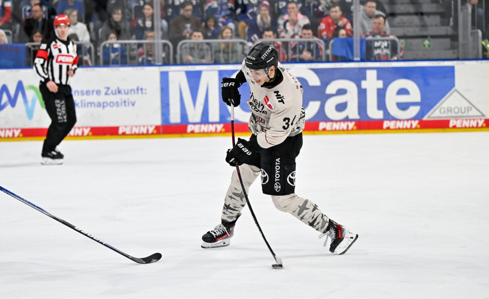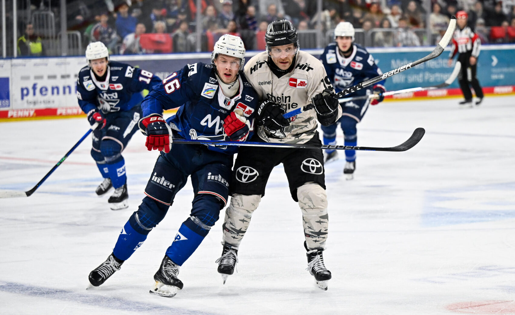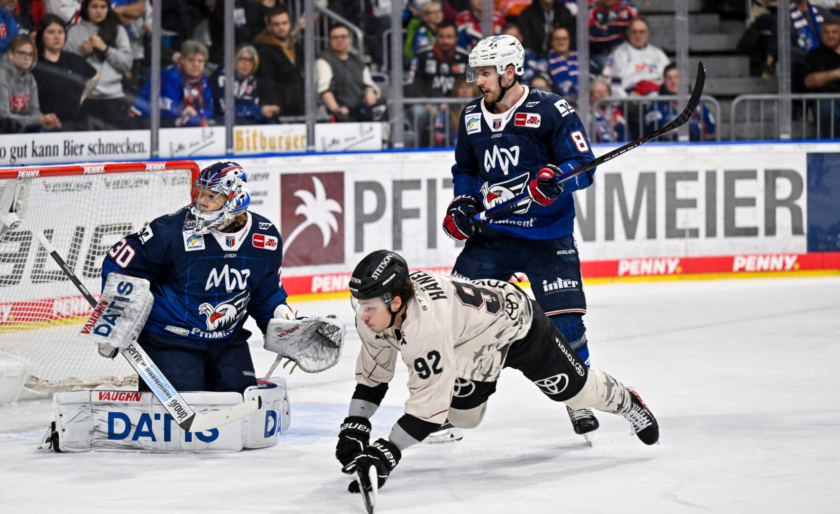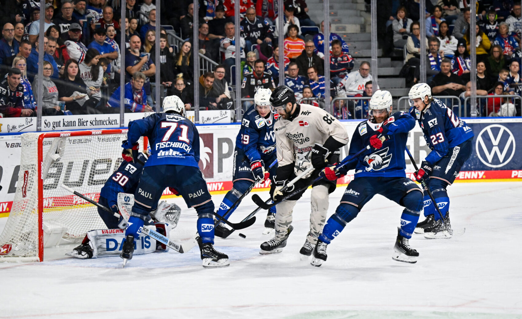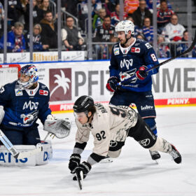 Mit dem Spielstand von 0:1 aus Haie-Sicht ging es dann in den Schlussabschnitt. Angetrieben vom knappen Rückstand bestimmten wir über weite Strecken des dritten Drittels die Partie. Unsere Mannschaft konnte sich immer wieder ins Mannheimer Drittel spielen und gute Chancen erarbeiten. Doch sowohl MacLeod nach Grenier-Zuspiel oder auch McIntyre bei einem Konter in Unterzahl brachten den Puck nicht im Tor unter. Auch eine Überzahlsituation zwischen den Minuten 53 und 55, sowie die Herausnahme von Torhüter Tobias Ancicka zugunsten eines sechsten Feldspielers sollten nicht zum Torerfolg führen. So unterlagen wir im letzten Spiel des Kalenderjahres 2023 denkbar knapp mit 0:1.