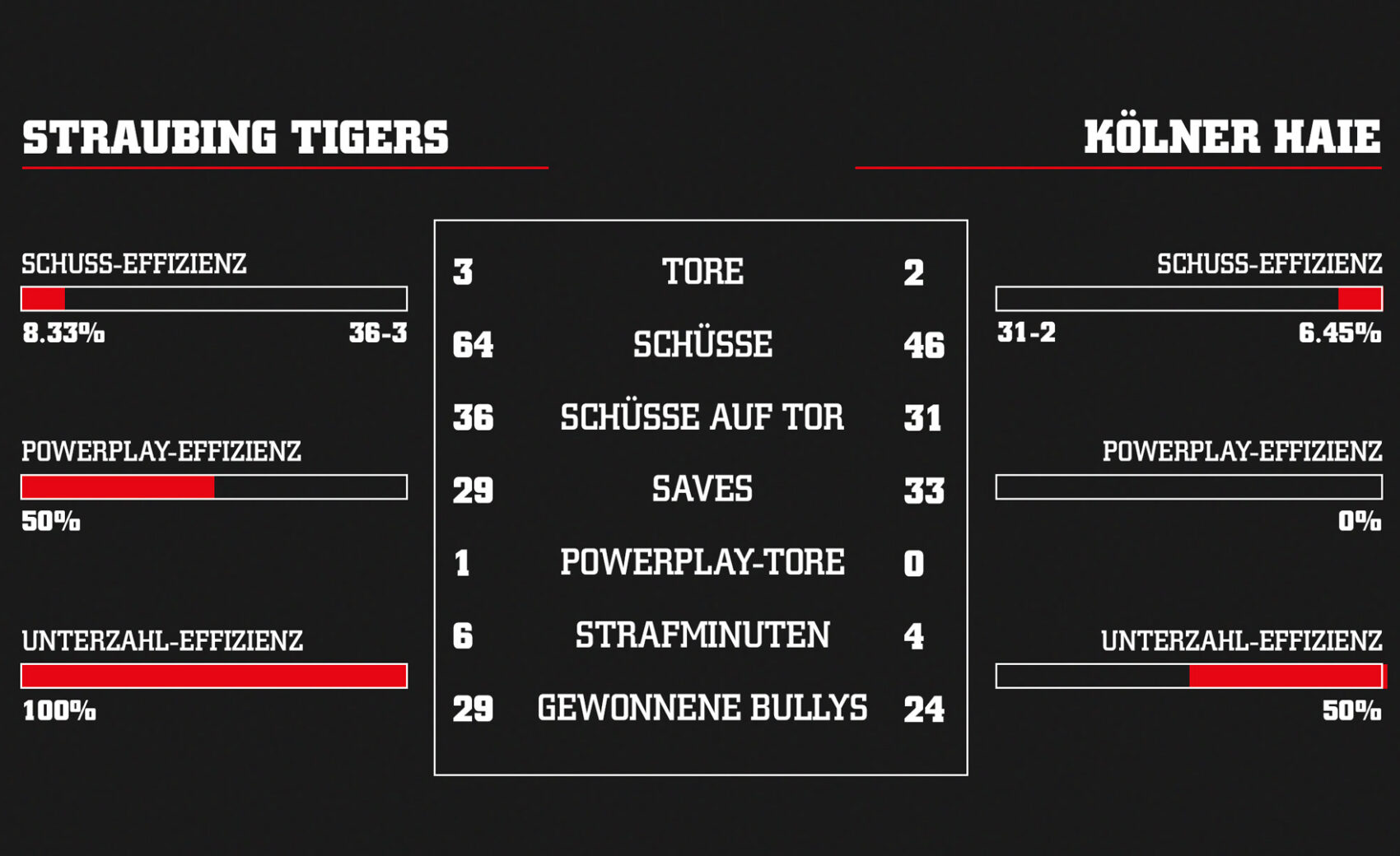 - Special Teams: Während die Haie bei drei Überzahl-Situationen ohne Treffer blieben, nutzten die Tigers eine von zwei Gelegenheiten.