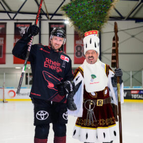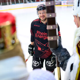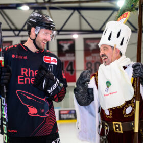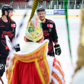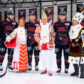 „Das Kölner Dreigestirn hat in Köln eine hohe Bedeutung, weswegen wir uns als Verein sehr gefreut haben, dass uns Prinz Karneval, Bauer und Jungfrau bei uns auf dem Eis besucht haben. Dass wir dem Dreigestirn mit ein paar schönen Stücken helfen konnten, die bei der Auktion für den guten Zweck hoffentlich eine schöne Spendensumme generieren, macht die ganze Geschichte noch runder.“