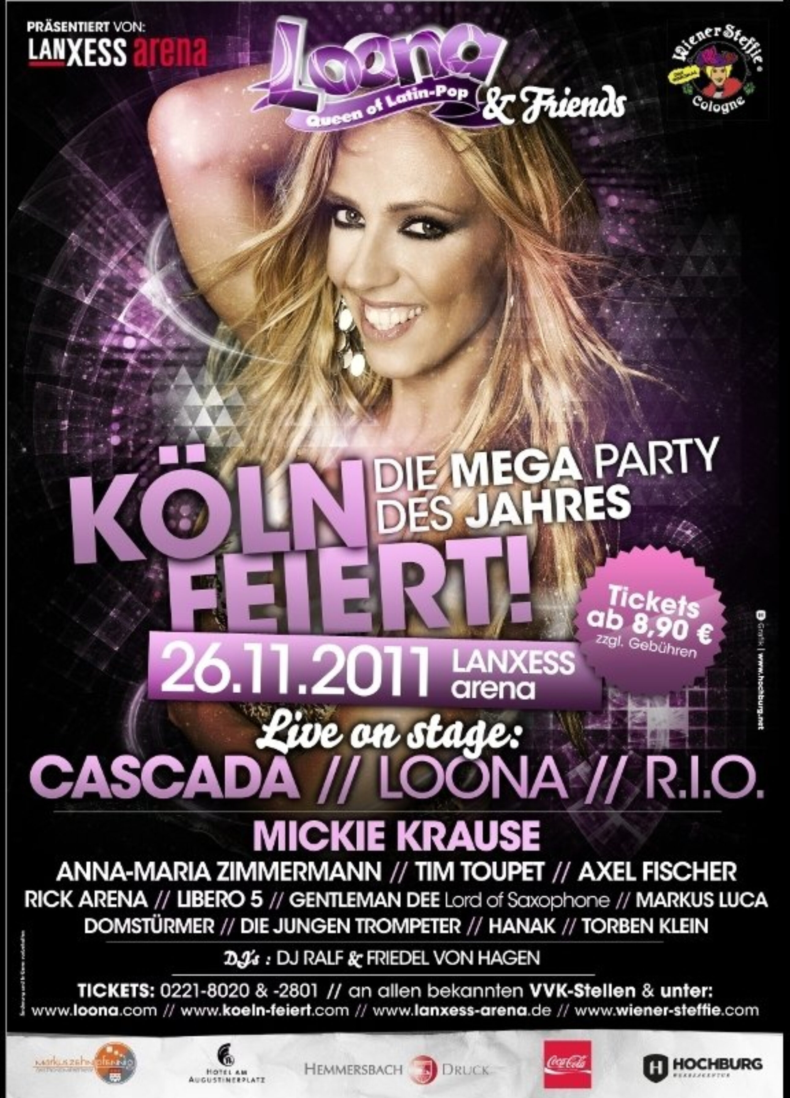 Für alle Partyfans wird der 26. November 2011 ein Highlight des diesjährigen Terminkalenders: In der LANXESS arena werden Cascada, Loona, R.I.O., Mickie Krause, Anna-Maria Zimmermann, Tim Toupet, Axel Fischer, Rick Arena, Libero 5, Gentleman Dee, Markus Luca, Domstürmer, die jungen Trompeter, Hanak und Torben Klein die Bühne rocken.