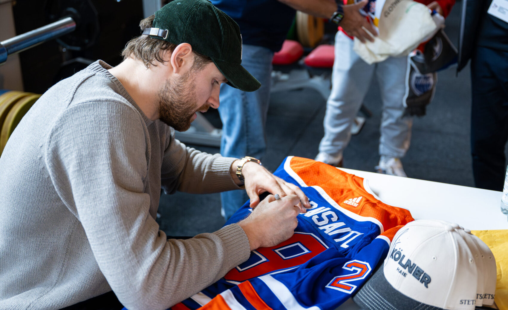 Draisaitl kehrte für die Spende in seine Heimatstadt Köln zurück, wo er mehr als sechs Jahre lang Eishockey für die Junghaie spielte, darunter auch in der U16-Mannschaft. Im Trainingszentrum der Kölner Haie verbrachte er mit insgesamt 29 Nachwuchsspielern der Junghaie einen abwechslungsreichen Nachmittag und begeisterte diese mit der grozügigen Spende.