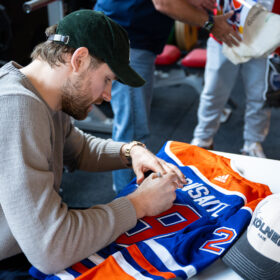 - Die Kinder, die während der Spende Zeit mit Leon Draisaitl verbrachten, trugen NHLPA-Trikots mit der Nummer 25 auf dem Rücken, um das 25-jährige Bestehen des NHLPA Goals & Dreams-Programms zu feiern