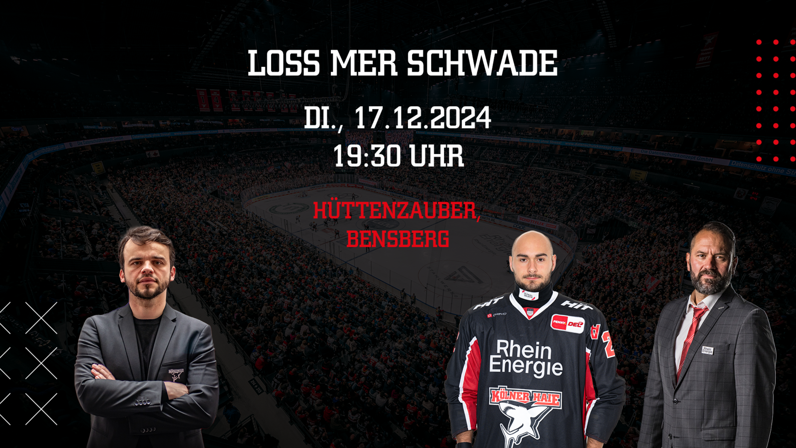 Am kommenden Dienstag, den 17. Dezember nehmen wir einmal mehr an einer „Loss mer schwade“-Talkrunde teil. Zu Gast sind Sportdirektor Matthias Baldys, Co-Trainer Manuel Kofler und Maximilian Glötzl. Der abwechslungsreiche Talk wird von Frank Neusser moderiert und findet im Hüttenzauber in Bensberg (Bergisch Gladbach) statt. Wir haben kompakt die Infos für euch!