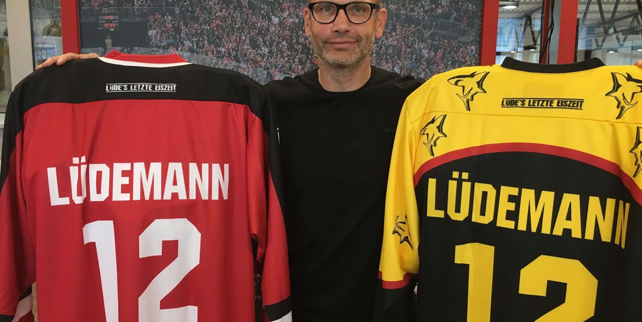 Doch bereits vor dem eigentlichen Abschiedsspiel wird es feierlich. Im Rahmen einer Ehrenbanner-Zeremonie wird Lüdemanns Nummer 12 unter das Dach der Arena gezogen und reiht sich damit neben die sieben bereits geehrten Haie-Legenden ein. Auch Lüde‘s 12 wird fortan beim KEC nicht mehr vergeben.