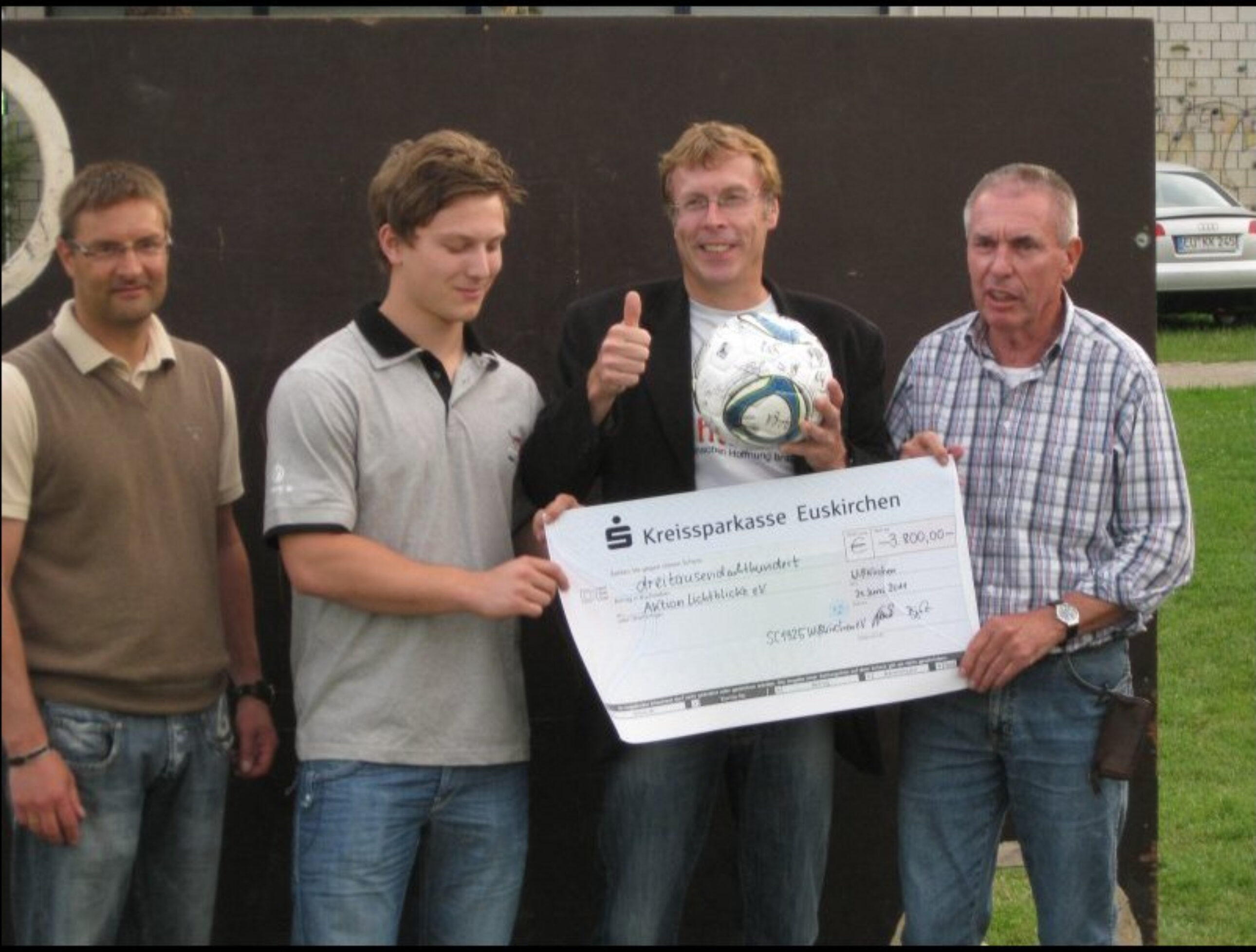 Die stolze Summe von € 3.800,- kam beim Prominenten-Torwandschieen des SC Wikirchen zusammen. „Hammer“, sagte Lichtblicke Vorstandsvorsitzender Alfred Hovestädt zu der gespendeten Summe. „Damit können wir richtig viel bewegen und Kindern in Not helfen.“