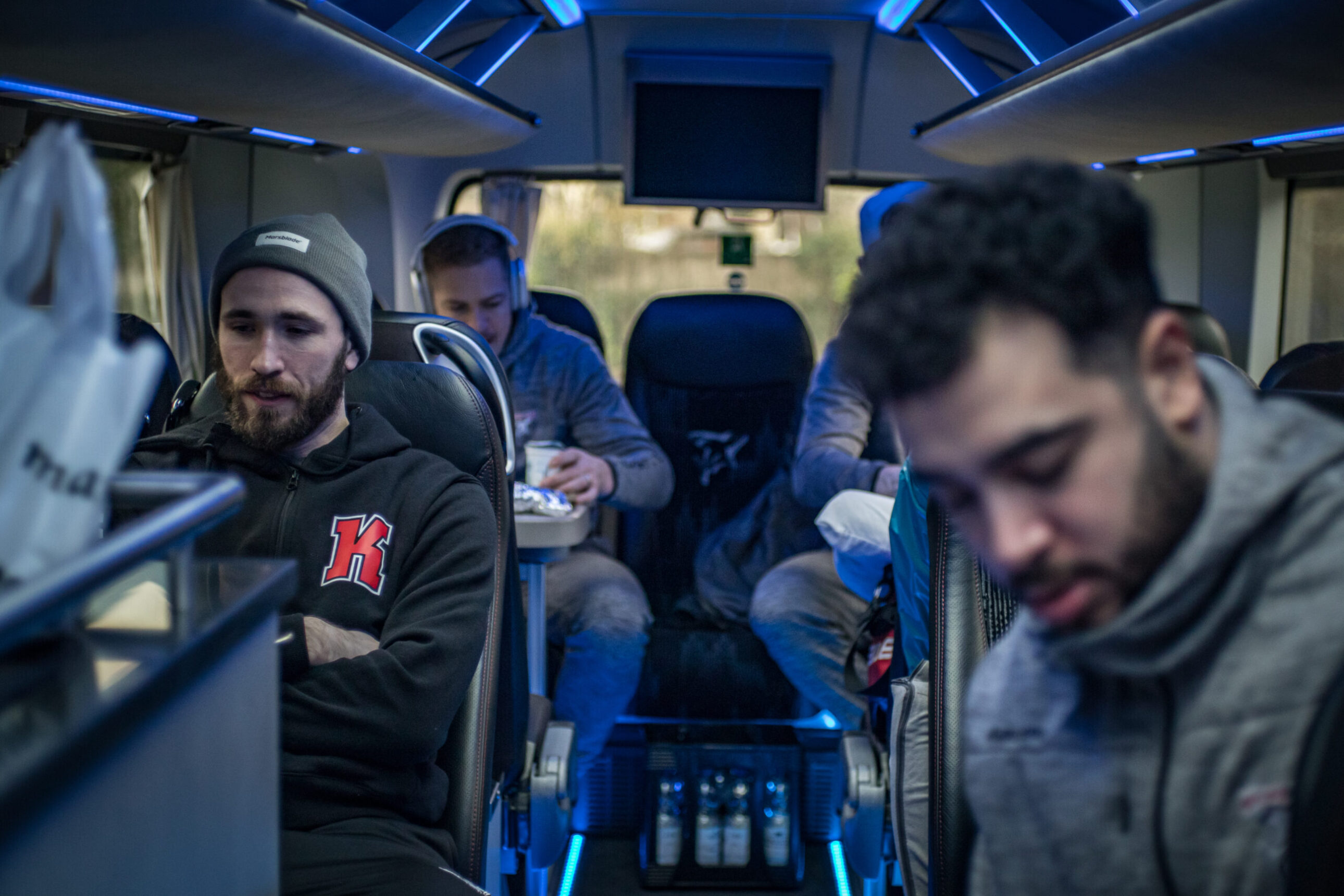 Am Donnerstag haben sich unsere Jungs auf den Weg Richtung Wolfsburg gemacht, dort übernachtet und treffen heute Abend auf die Grizzlys (19:30 Uhr, Magenta Sport). Es ist das erste von neun Spielen am Stück, die der KEC auf fremdem Eis bestreitet. Doch wie sieht so eine Reise eigentlich aus? Welche Serien werden im Bus geguckt? Was passiert nach Ankunft im Hotel? Wir öffnen die Tür des Busses und nehmen Euch imaginär mit auf eine Auswärtstour.