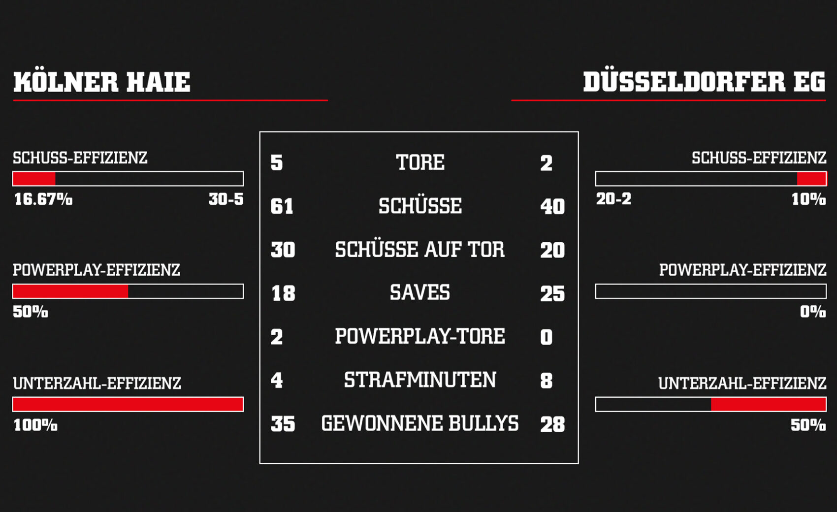 - Special Teams Entscheidung: Mit zwei Toren in Überzahl und keinem Gegentreffer in Unterzahl legten die Haie in den Special Teams den Grundstein für den Derbysieg.