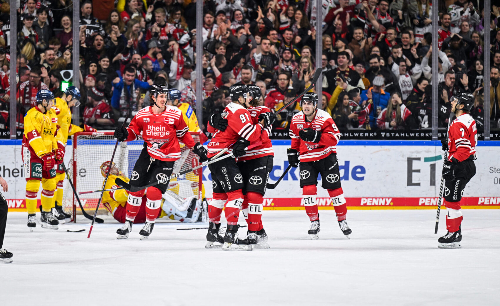 „Von der ersten Minute an war es ein gutes Spiel unsererseits. Wir haben die Räume eng gemacht und haben Düsseldorf in der neutralen Zone nicht viel Platz gelassen. Ich bin stolz auf die Mannschaft, denn es ist auch immer ein gewisser Druck da beim Derby zu Hause. Die Art und Weise wie wir gespielt haben, hat mir sehr gut gefallen. Die Jungs haben über 60 Minuten am Spielplan festgehalten.“