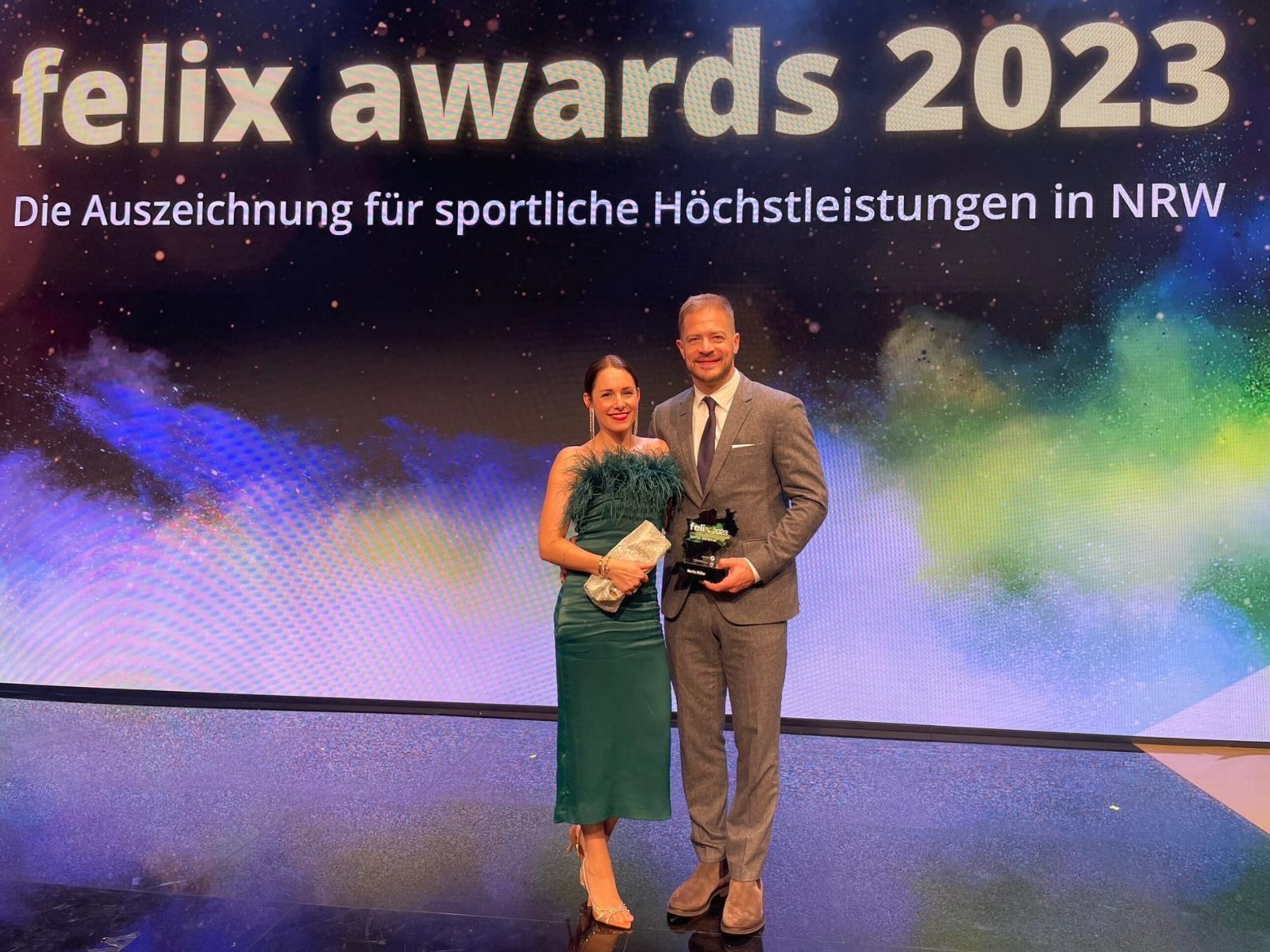 Am Freitagabend ehrten das Land Nordrhein-Westfalen und der Landessportbund NRW die herausragenden Leistungen der Sportlerinnen und Sportler, Teams sowie Trainerinnen und Trainer mit dem felix award 2023 in der Düsseldorfer Classic Remise.