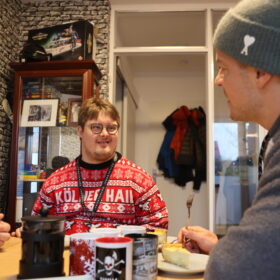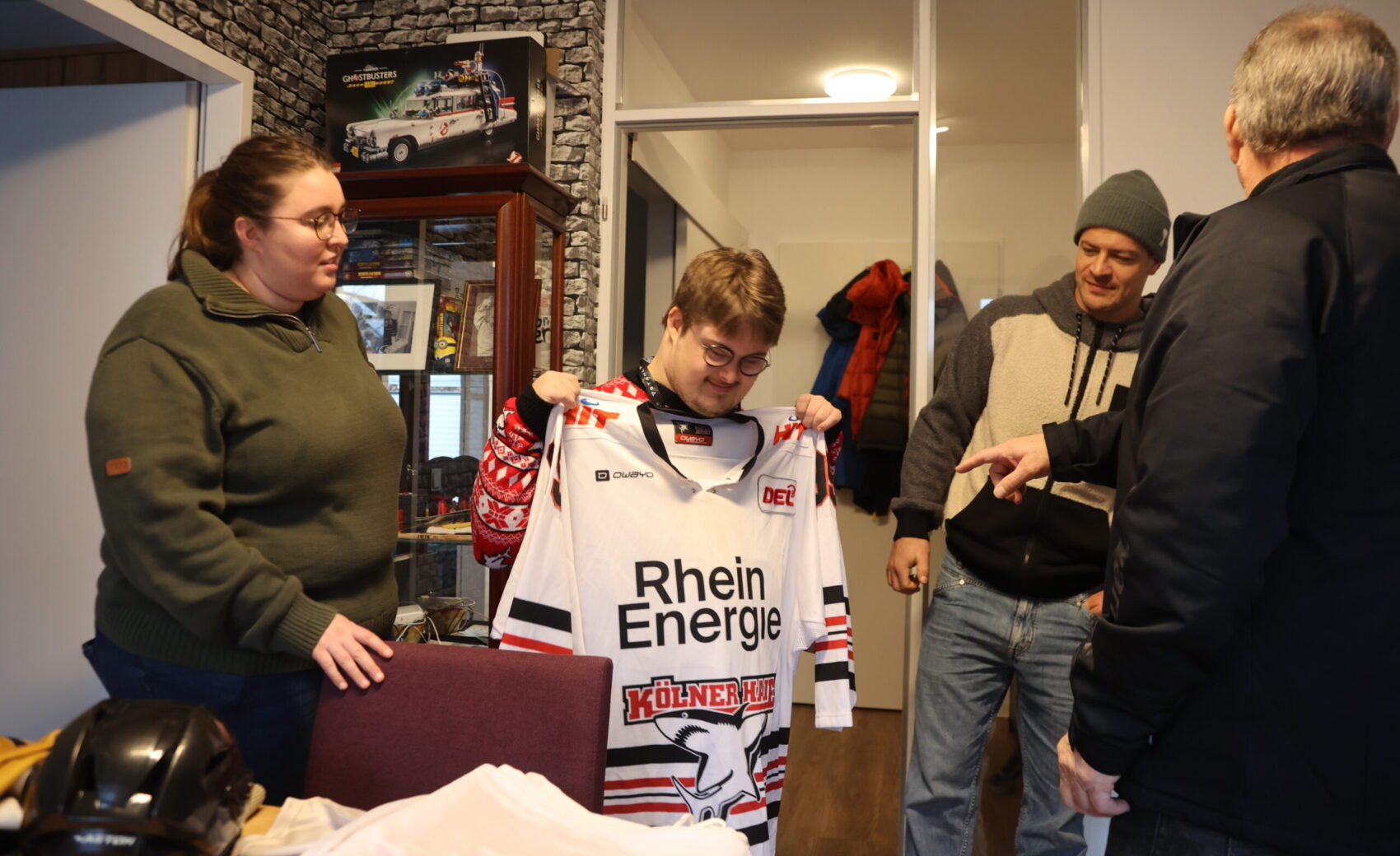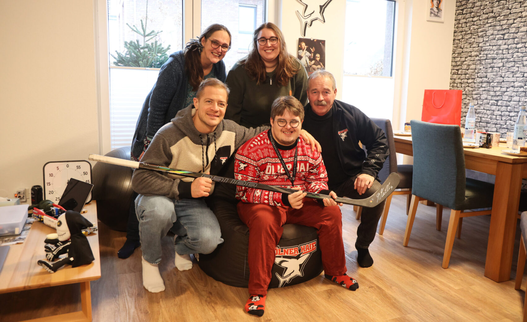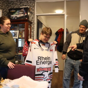 Jan (25) dürfte den meisten unter euch ein Begriff sein. Der enthusiastische Haie-Fan mit der Dauerkarte für Block 204 ist bei jedem Heimspiel und schafft es mit seiner unheimlich positiven Energie auch immer wieder auf unseren Videowürfel. Der 25-Jährige hat das Down-Syndrom und lebt seit einigen Wochen das erste Mal in seinem Leben allein in einer Wohnung. Diese befindet sich in Sürth, die von inklusiv wohnen Köln e.V. betreut wird. Auch wenn Jan, wie er selbst ganz klar feststellt, „Fan von allen Haie-Spielern“ ist, so hat es ihm einer ganz besonders angetan, Moritz Müller.