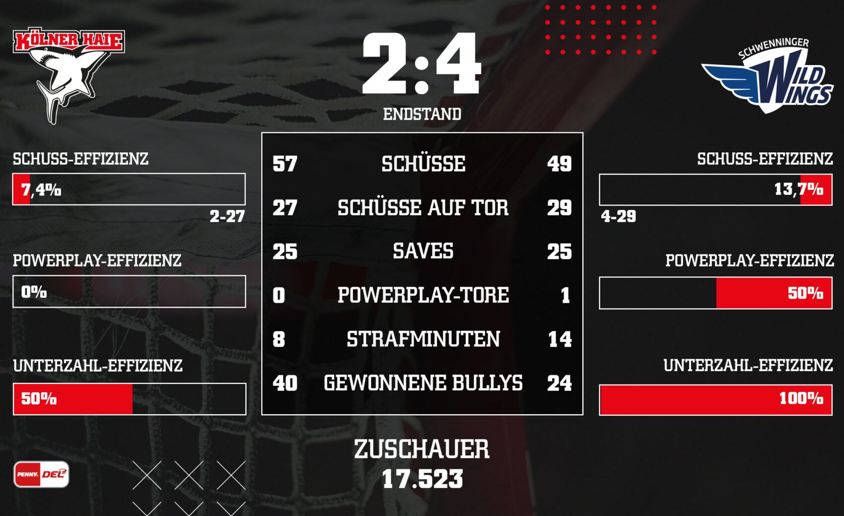 Nach zuletzt drei Siegen in Folge müssen wir uns im Heimspiel vor 17.523 Zuschauern den Schwenninger Wild Wings verdient mit 2:4 geschlagen geben. Frederik Storm und Justin Schütz erzielen jeweils unsere Anschlusstore, doch für mehr soll es an diesem Sonntagnachmittag leider nicht reichen. Wir haben den Spielbericht.