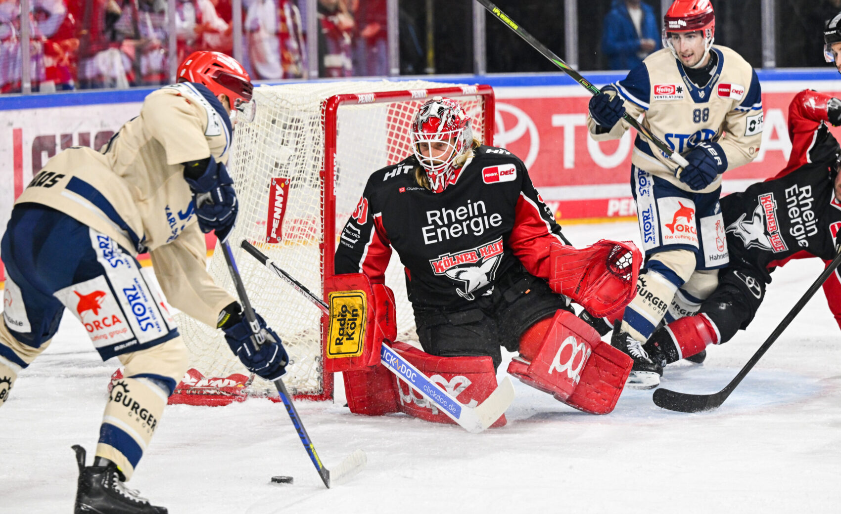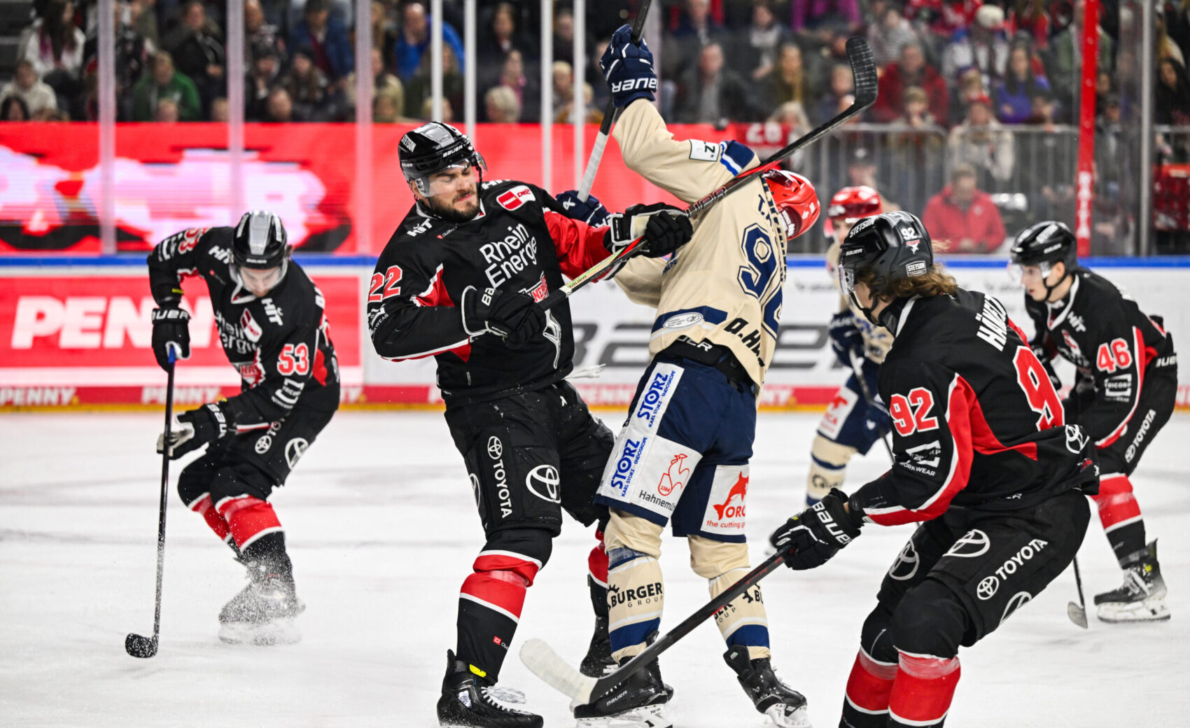 Wir erwischten einen ordentlichen Start und hätten durch Louis-Marc Aubry beinahe ausgleichen können, doch sein Abschluss aus kurzer Distanz landete neben dem Kasten (22.). In den kommenden Minuten bekamen wir gleich zweimal die Chance im Powerplay, lieen die Überzahlsituationen trotz guter Möglichkeiten jedoch leider ungenutzt. Das sollte sich rächen, denn Tyson Spink stellte in der 28. Minute den alten Zwei-Tore-Rückstand wieder her – der Kanadier wurde dabei im Slot zu frei gelassen und hatte mit seiner Torgefährlichkeit vor Pantkowski wenig Mühe, die Scheibe zum 3:1 einzunetzen.