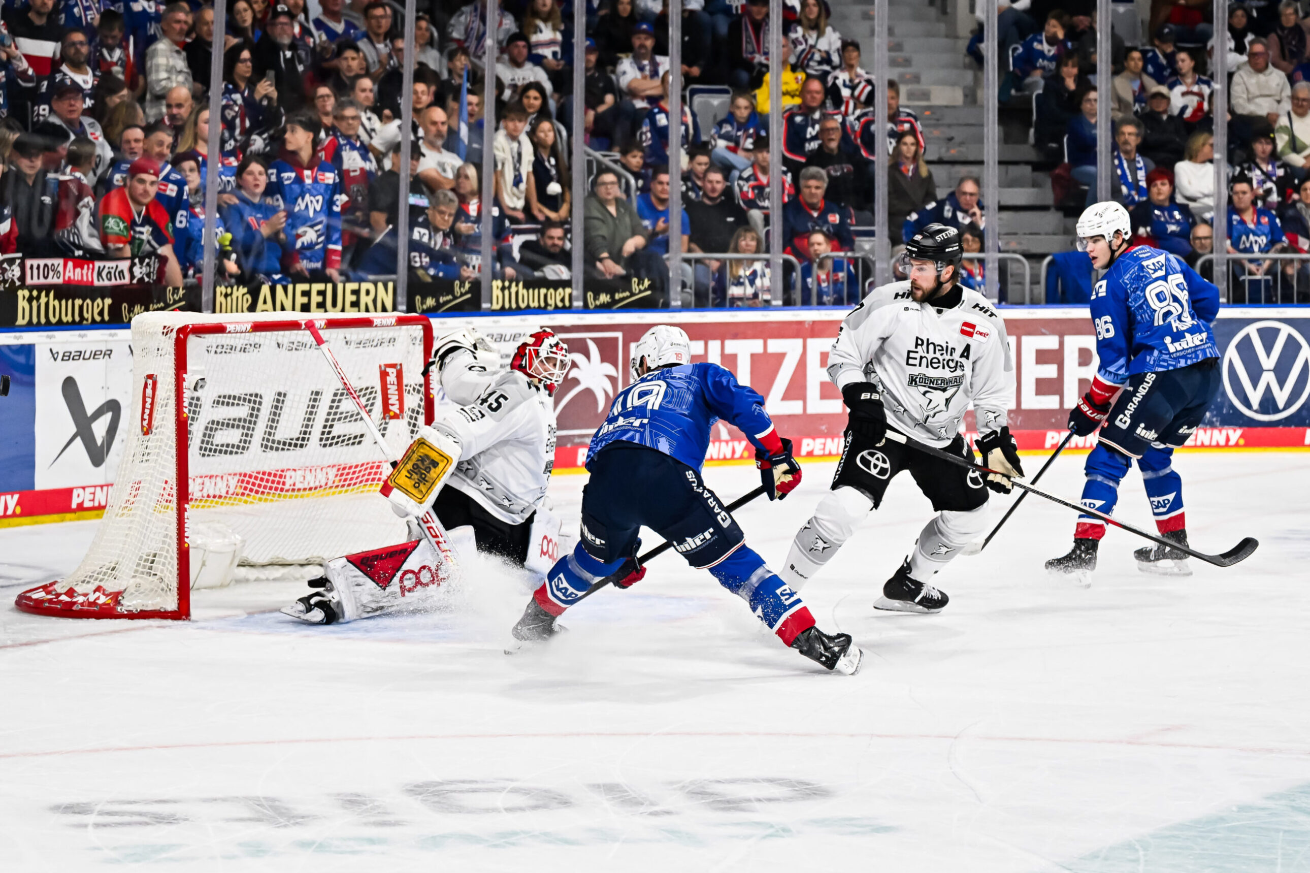 Kurz darauf mussten wir gegen das stärkste Powerplay-Team der Liga in Unterzahl dann das 0:1 schlucken. Nach einem gewonnenen Bully ging es über Reichel und Adler-Kapitän Reichel, dem besten Assistgeber der Saison, schnell – Justin Schütz, Ex-Hai, legte sich die Scheibe vor Ancicka von der Rück- auf die Vorhand und traf zur Mannheimer Führung. Ancicka war dabei ohne Chance.