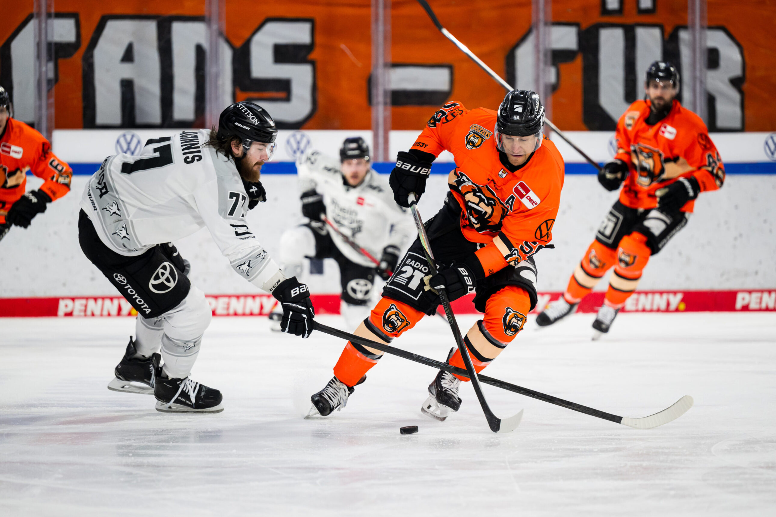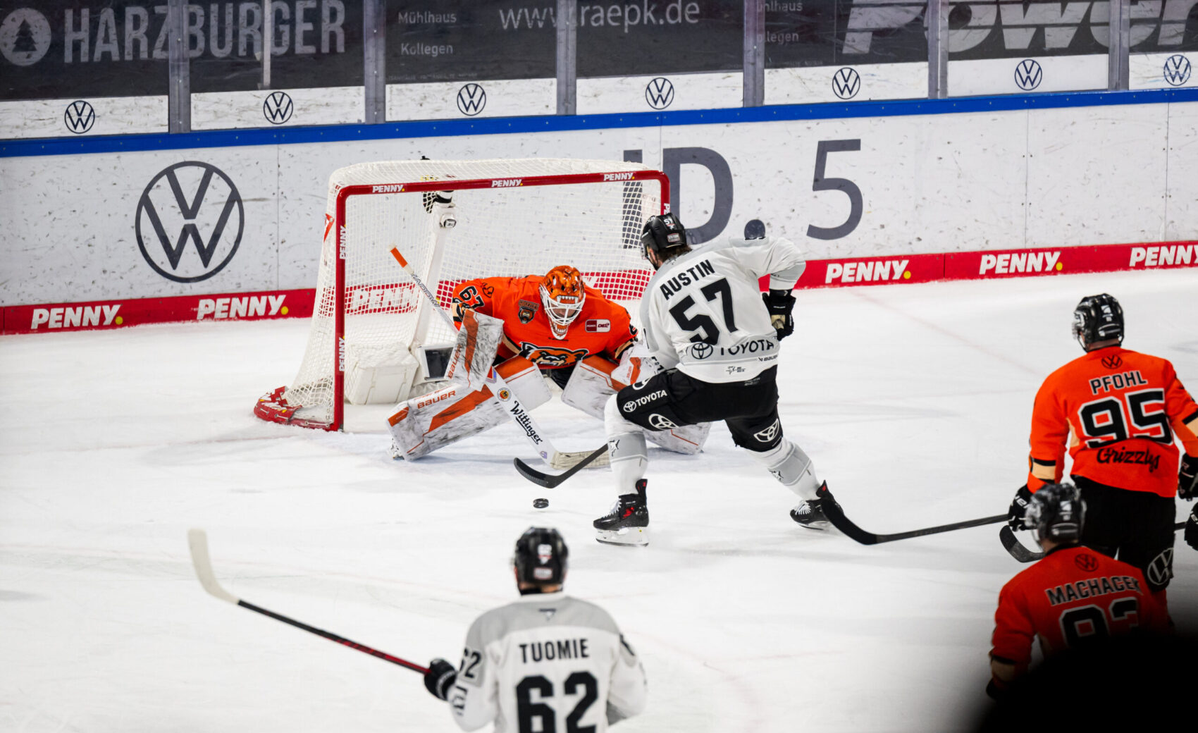 Wildes Spiel in Wolfsburg ohne Punkte. Nach drei Siegen in den bisherigen Saisonduellen erwischen wir bei den Grizzlys einen denkbar bitteren Start, kämpfen uns leidenschaftlich zurück – und müssen uns am Ende dennoch mit 5:8 geschlagen geben. Wir haben den Spielbericht.