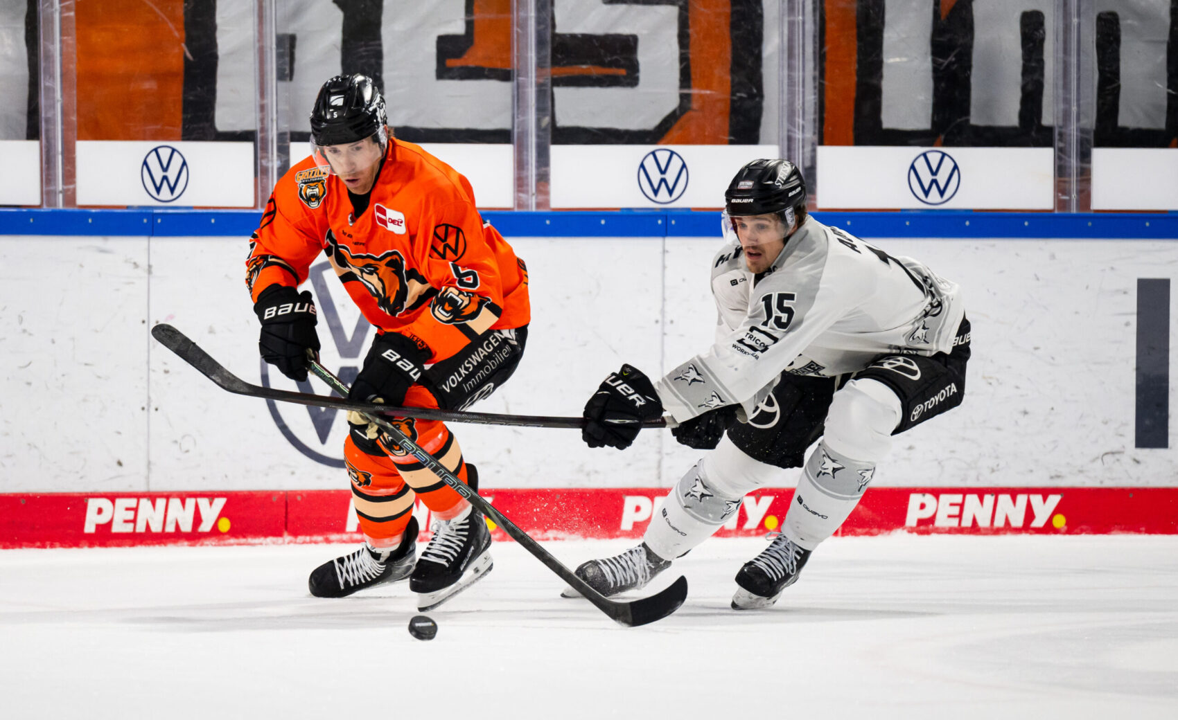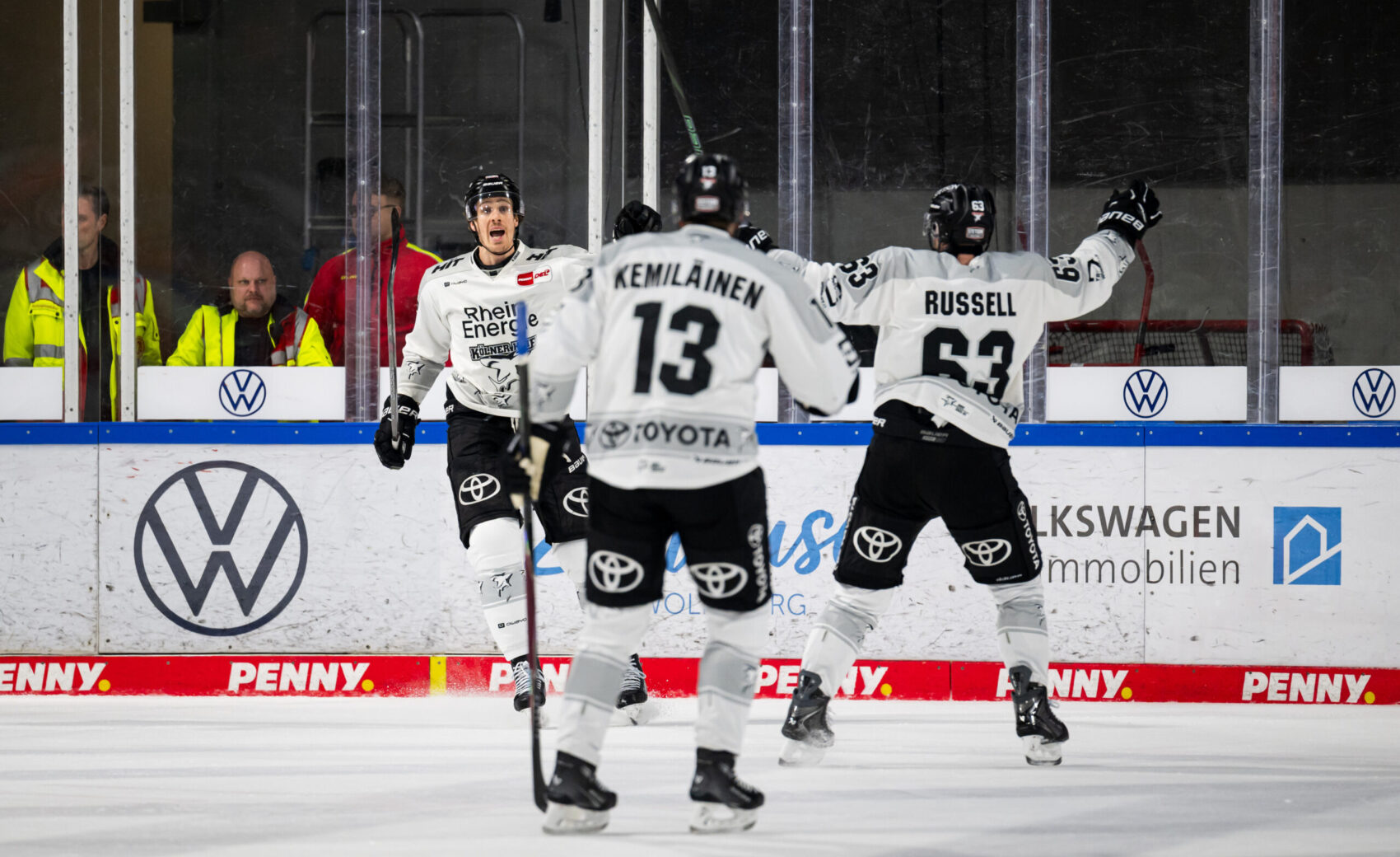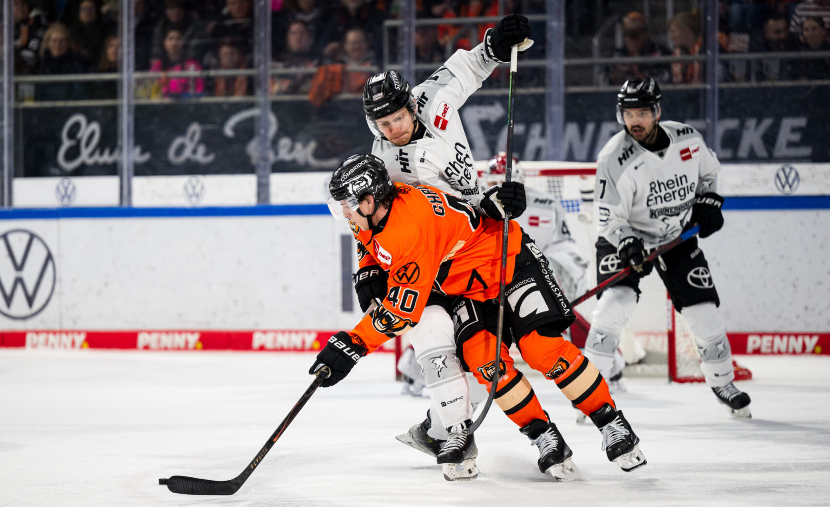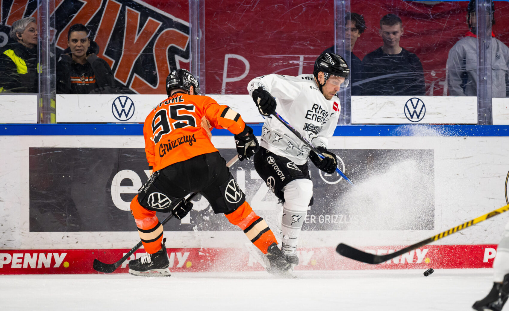 Im zweiten Drittel übernahm unsere Mannschaft mehr und mehr die Spielkontrolle, erspielte sich Chancen und wurden für den Einsatz auch belohnt. Frederik Storm jagte die Scheibe aus dem Handgelenk in den Winkel zum Anschlusstreffer, wenig später glich Brady Austin nach starkem Solo trocken ins kurze Eck zum 4:4 aus – ein starker Turnaround nach dem 0:4 in der 11. Minute. Doch die Grizzlys blieben im Spiel und schlugen zurück. Choupani brachte die Grizzlys in der 33. Minute erneut in Front, ein weiterer Wolfsburger Treffer noch vor der zweiten Sirene wurde nach Videobeweis nicht gegeben. Mit einem 4:5 aus Kölner Sicht ging es in den Schlussabschnitt.