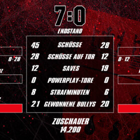 1:0 Zachary Boychuk (Noebels) 3. Minute; 2:0 Gabriel Fontaine (Veilleux, Geibel) 4. Minute; 3:0 Ty Ronning (Müller, Pföderl) 8. Minute; 4:0 Marcel Noebels (Galipeau, Wiederer) 12. Minute; 5:0 Yannick Veilleux 24. Minute; 6:0 Zachary Boychuk (Müller, Wiederer) 30. Minute; 7:0 Frederik Tiffels (Pröderl, Smith) 54. Minute