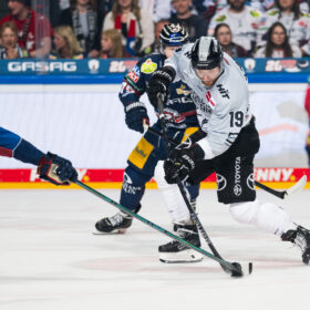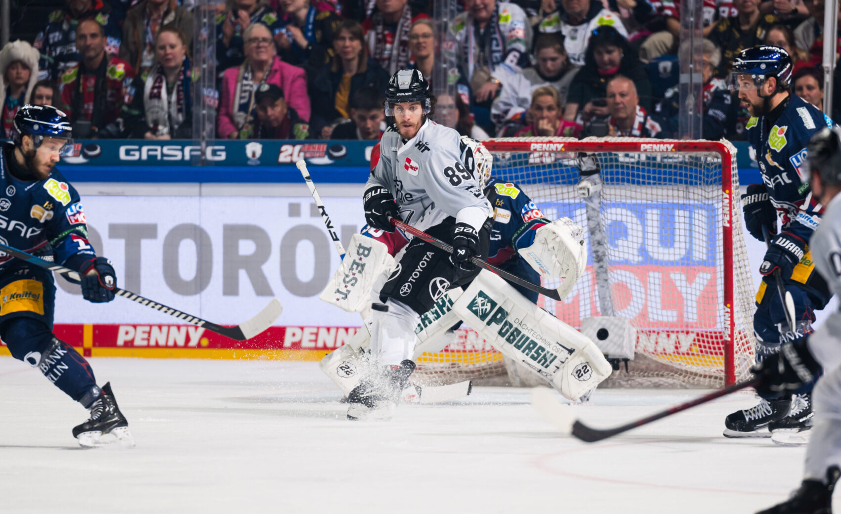 Folgerichtig war das Tempo und die Intensität im zweiten Drittel nicht mehr so hoch, wie noch zu Beginn der Partie. Tobias Ancicka, der nach dem zweiten Gegentreffer für Julius Hudacek in unserem Kasten übernahm, zeigte einige gute Paraden – war bei den weiteren Gegentreffern von Veilleux und Boychuck aber auch machtlos. 0:6 stand es so nach 30 Minuten. Offensiv haperte es unserer Mannschaft nicht an Chancen, doch wie schon in den vergangenen beiden Partien sollte einfach kein Treffer fallen. Bester Beweis dafür war ein Pfostenkracher von Maxi Kammerer, der in der 31. Minute aus dem Lauf nur den Innenpfosten traf. Auch ein anschließendes Powerplay nach Foul an Frederik Storm konnten wir trotz einiger vielversprechender Einschussgelegenheiten nicht nutzen. So gingen wir mit dem Zwischenstand von 0:6 aus unserer Sicht in die letzte Drittelpause der Saison 2024/2025.
