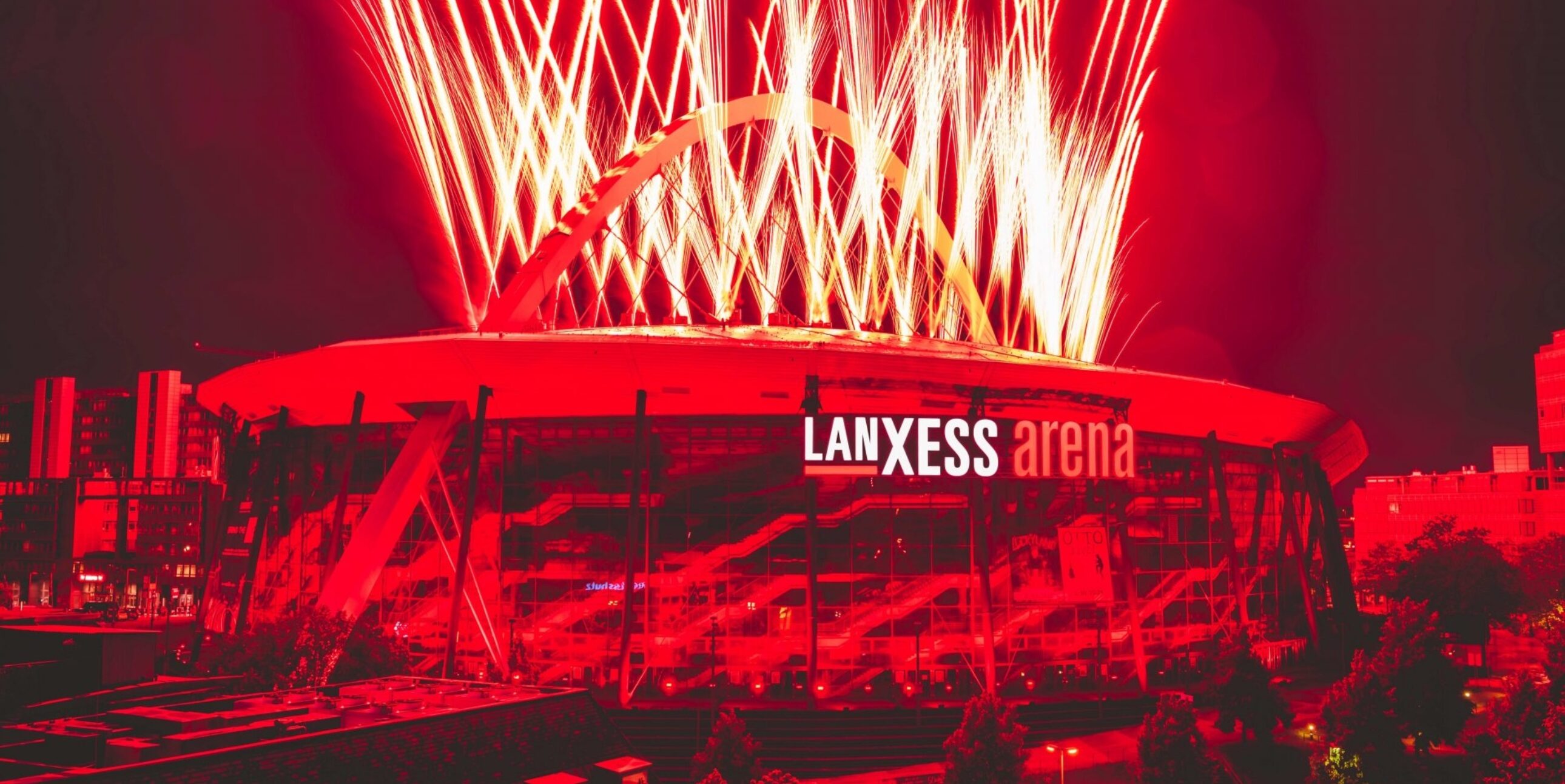 Im Bild: Die LANXESS arena strahlte in der Nacht vom 22. auf den 23. Juni rot (Julian Huke)