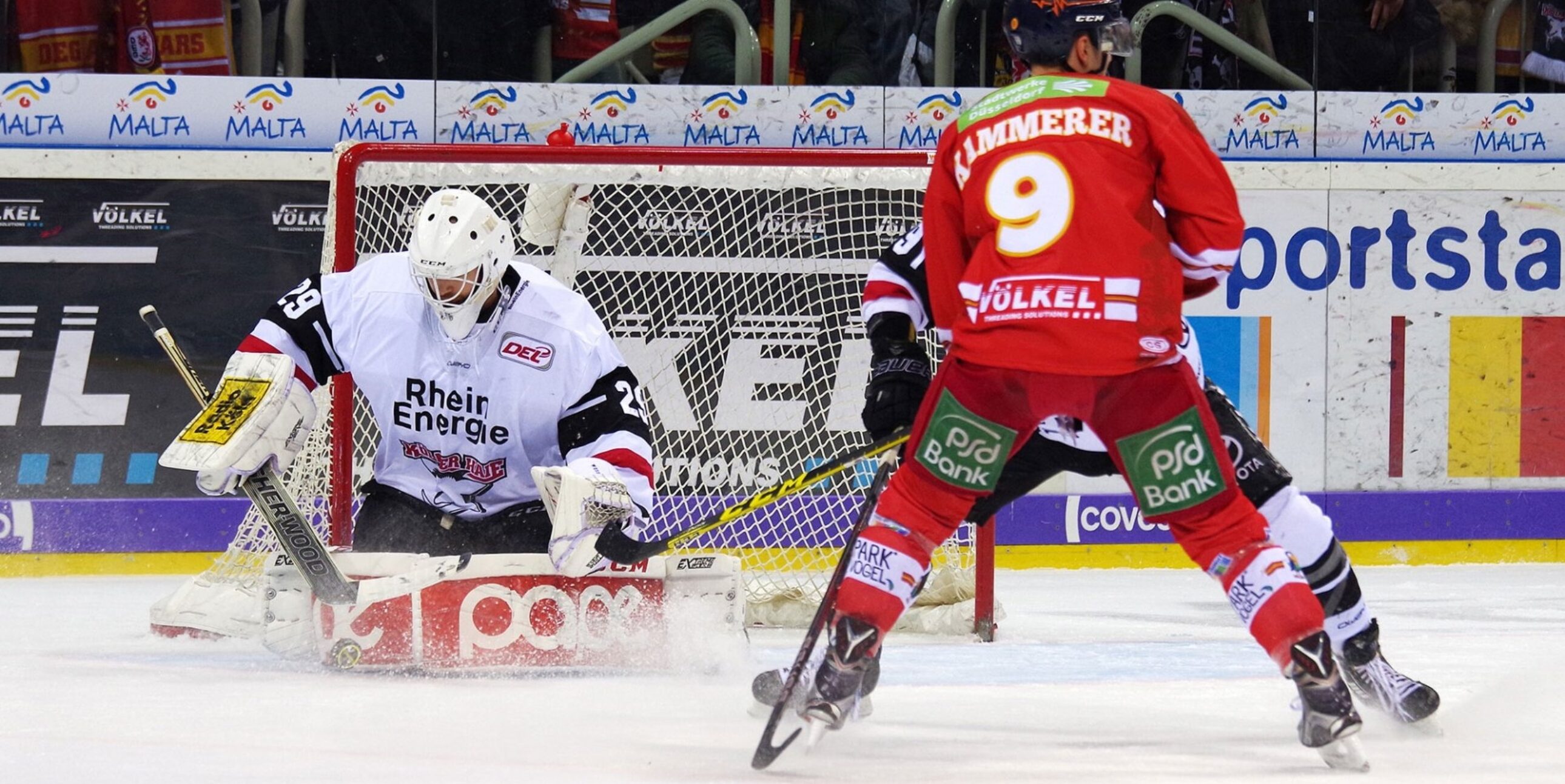 Die Kölner Haie unterliegen in Düsseldorf mit 2:3 nach Verlängerung.