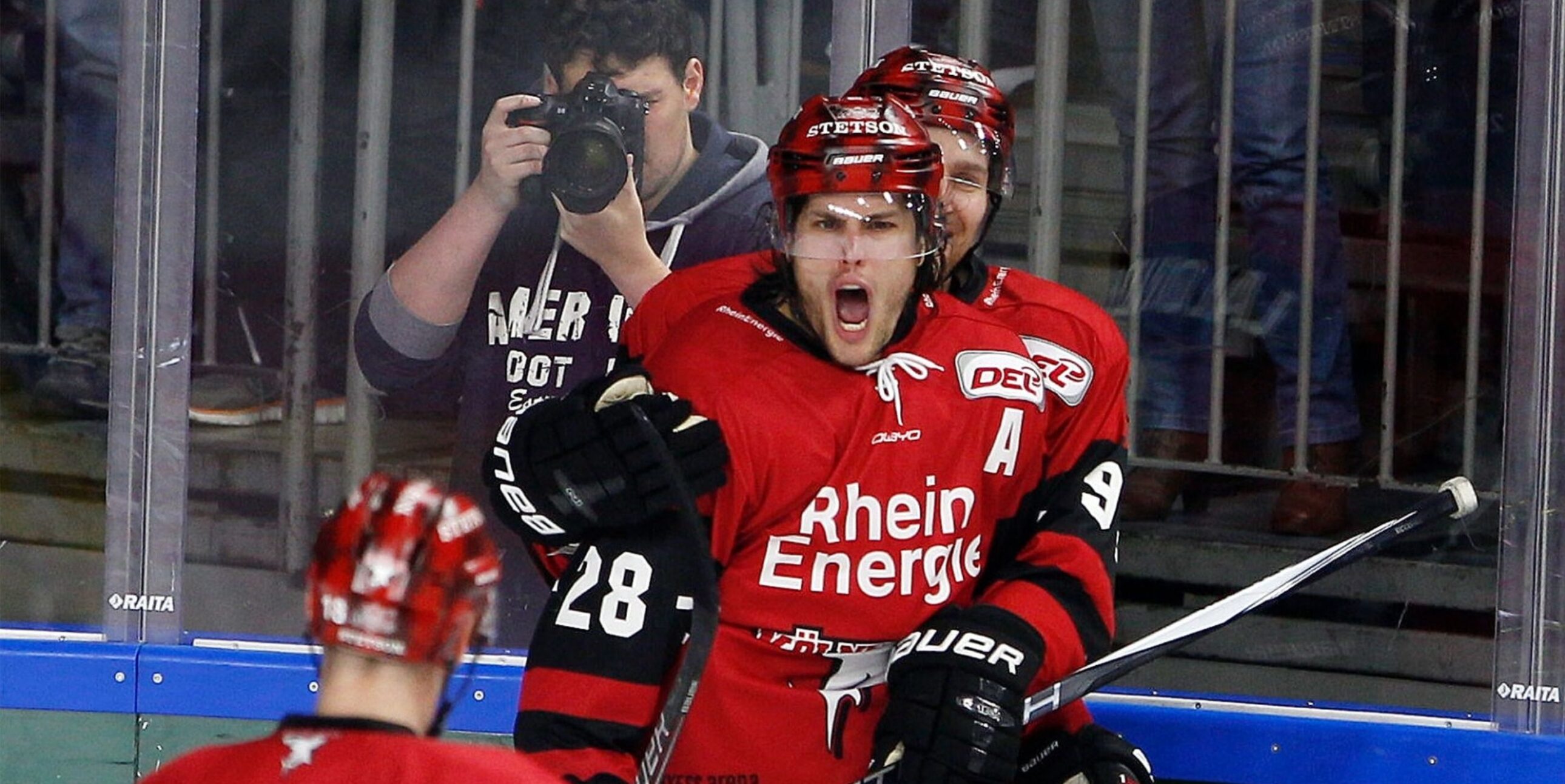Die Kölner Haie schlagen die Düsseldorfer EG in der Verlängerung mit 3:2.