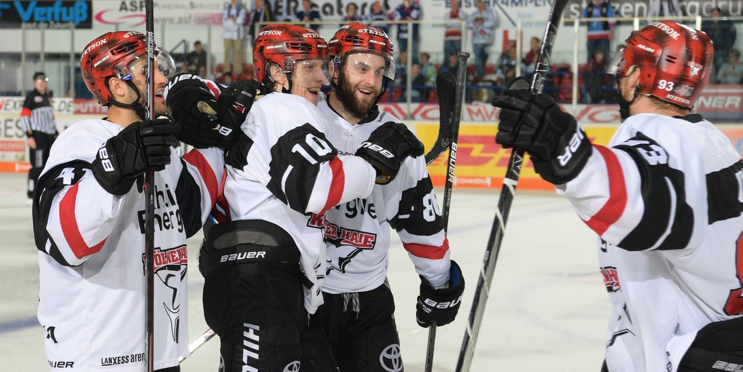 Es ging in die Overtime. Dort war dann Christian Ehrhoff zur Stelle. Der Haie-Kapitän schloss einen Alleingang erfolgreich ab zum 3:2-Sieg der Haie am Seilersee.