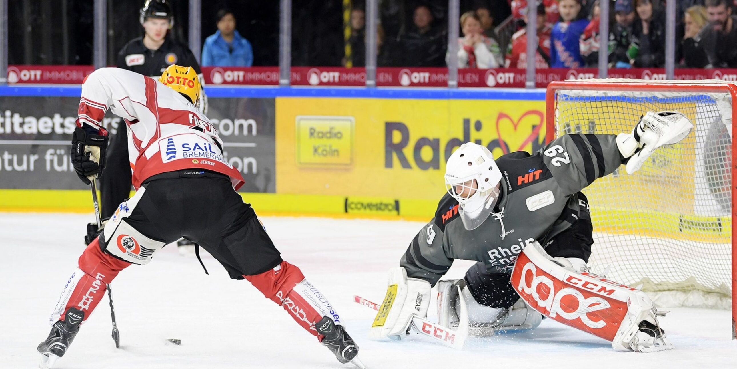 Die Kölner Haie bleiben 2019 ungeschlagen und besiegen Bremerhaven mit 3:2 nach Penaltyschieen. Felix Schütz trifft als 22. Schütze zum Sieg.