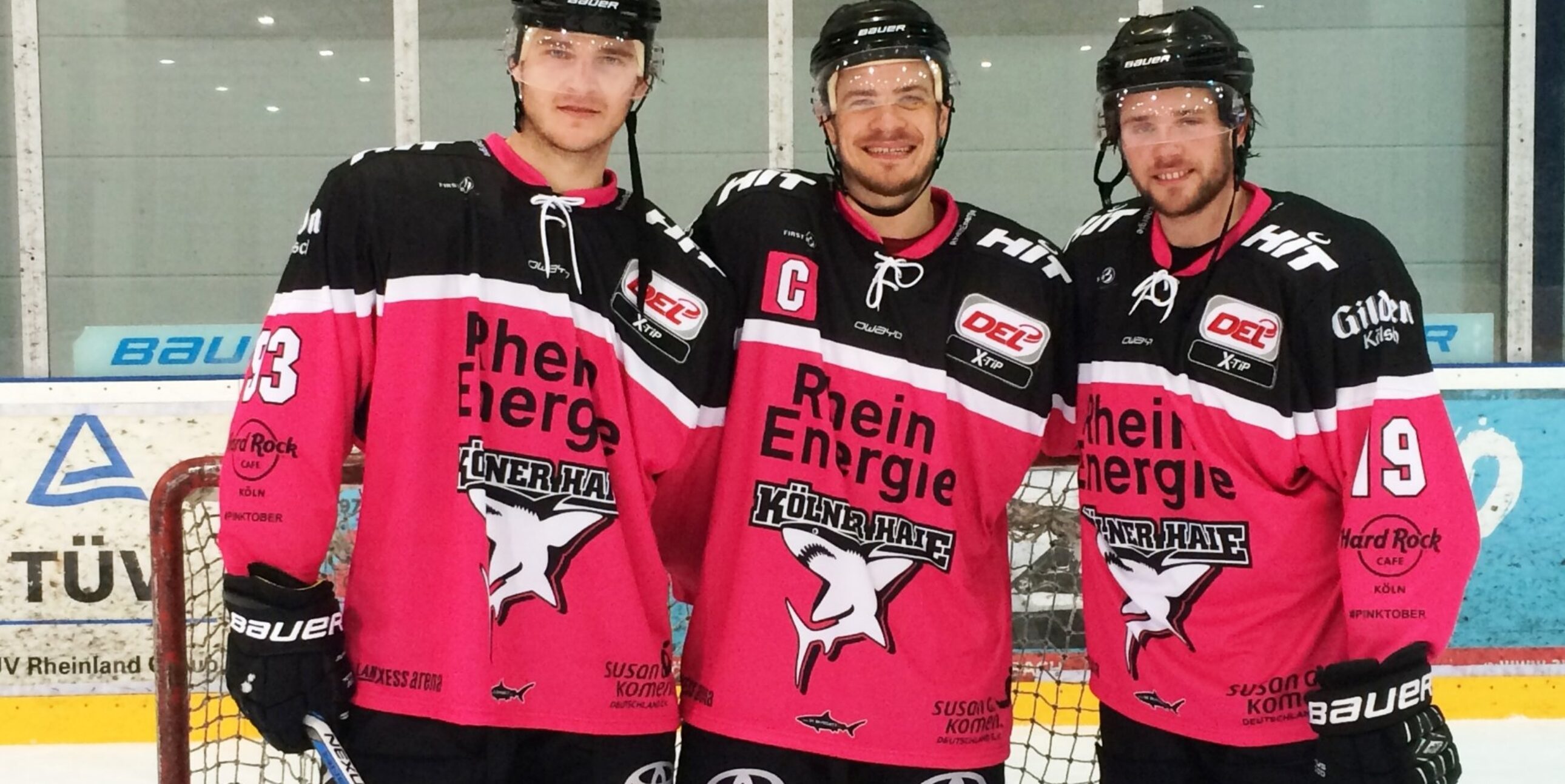 Wenn sich das Hard Rock Café dieses Jahr zum 16. Mal mit der PINKTOBER-Kampagne gegen Brustkrebs stark macht, dann dürfen auch die Kölner Haie nicht fehlen. Beim Heimspiel am Freitag gegen die Krefeld Pinguine (09.10.2015, 19:30 Uhr) wird die Mannschaft deswegen in pinken Jerseys aufs Eis gehen. Wie schon in den vergangenen Jahren machen die Haie so auf die PINKTOBER-Idee aufmerksam. Und natürlich hoffen die Haie, dass die pinken Jerseys auch in diesem Jahr auf dem Eis wieder Glücksbringer sein werden. In der vergangenen Saison gab es einen spannenden Overtime-Sieg gegen München (2:1 n.V.).