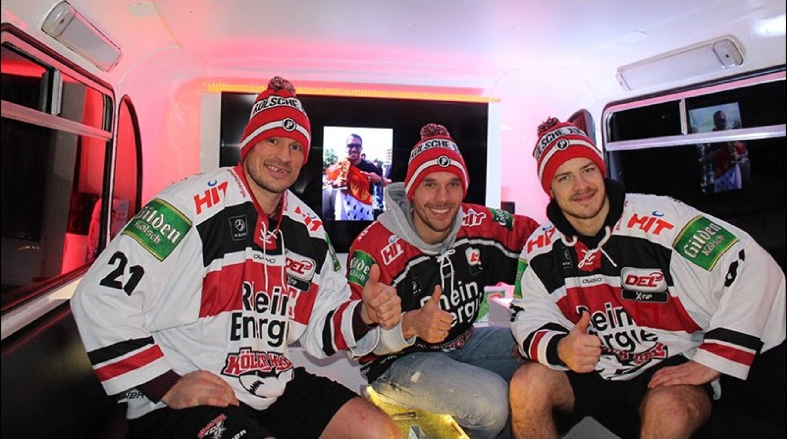 Und er hatte sogar noch eine tolle Aktion im Gepäck: Im Rahmen seiner „LP2014“-Spendenaktion parkte er einen doppelstöckigen London-Bus vor die Arena. Hier sind besondere Andenken aus Podolskis erfolgreichem Sportjahr 2014 ausgestellt. Doch damit nicht genug: Über unitedcharity.de versteigert er ausgewählte und einzigartige Andenken, die es nirgendwo zu kaufen gibt. Zum Beispiel ein „All Area“-Paket für ein Heimspiel der Kölner Haie, mit dem die Gewinner einen besonderen Blick hinter die Kulissen werfen dürfen.
