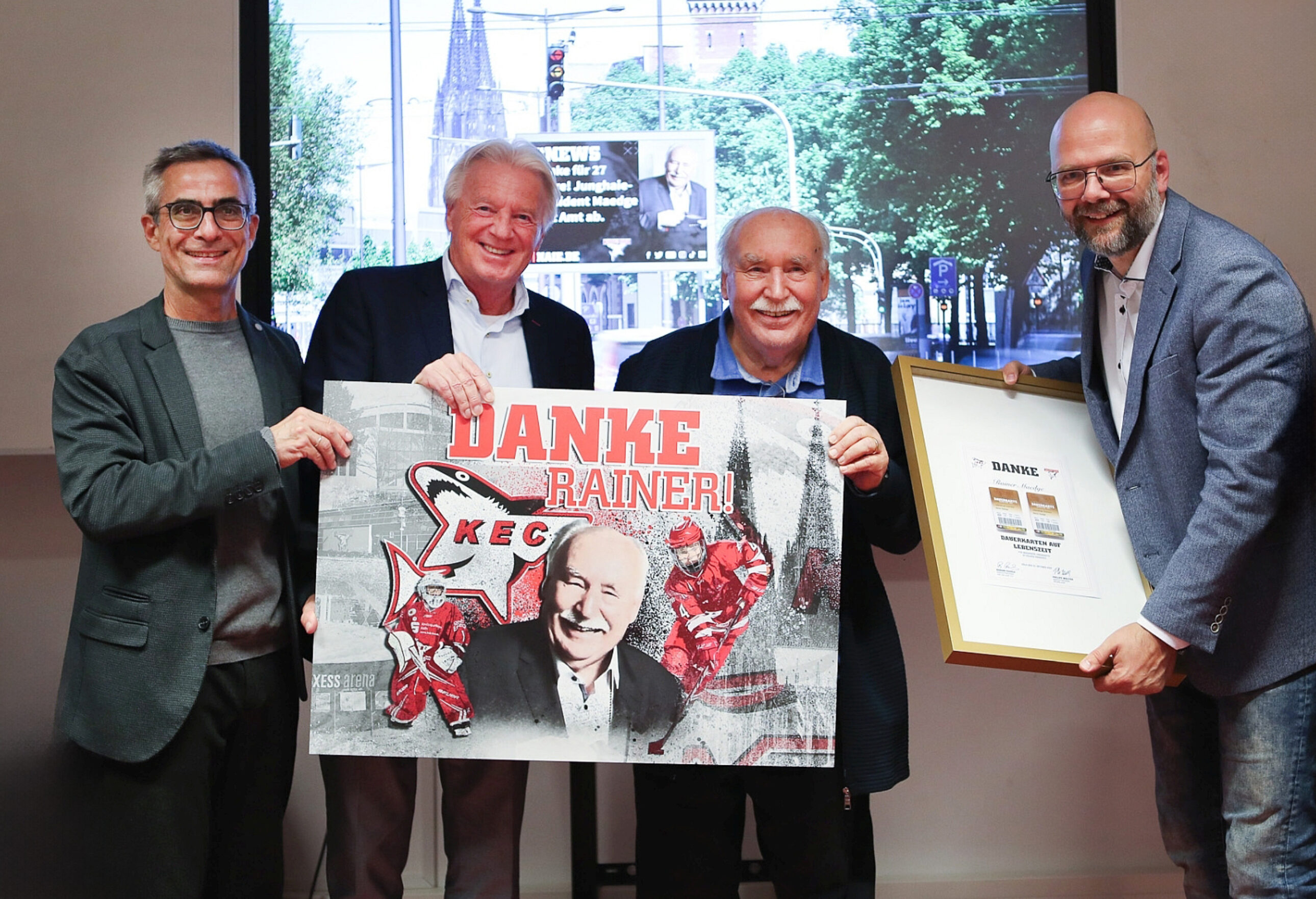 Rainer Maedge wird aufgrund seiner herausragenden Verdienste für den Kölner Eishockeysport zum Ehrenpräsidenten der Junghaie ernannt. Zudem wird er dem Verein als Beisitzer treubleiben. In enger Zusammenarbeit mit dem Vorstand wird er weiter die Realisierung des inklusiven Sportparks vorantreiben.