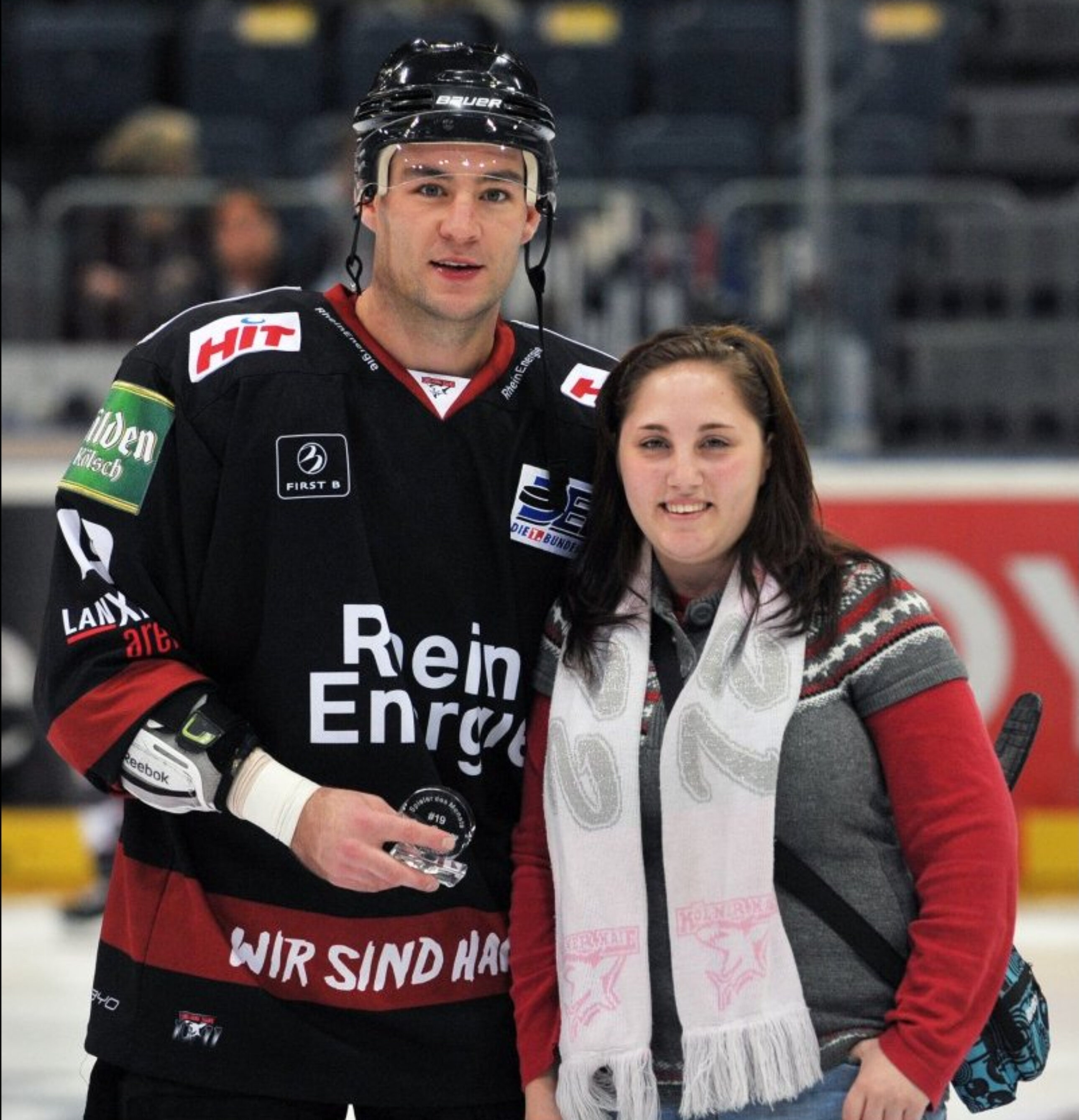 Vor dem Heimspiel gegen Berlin wurde Ramsay von Haie-Fan Alexandra Schmitz ausgezeichnet.