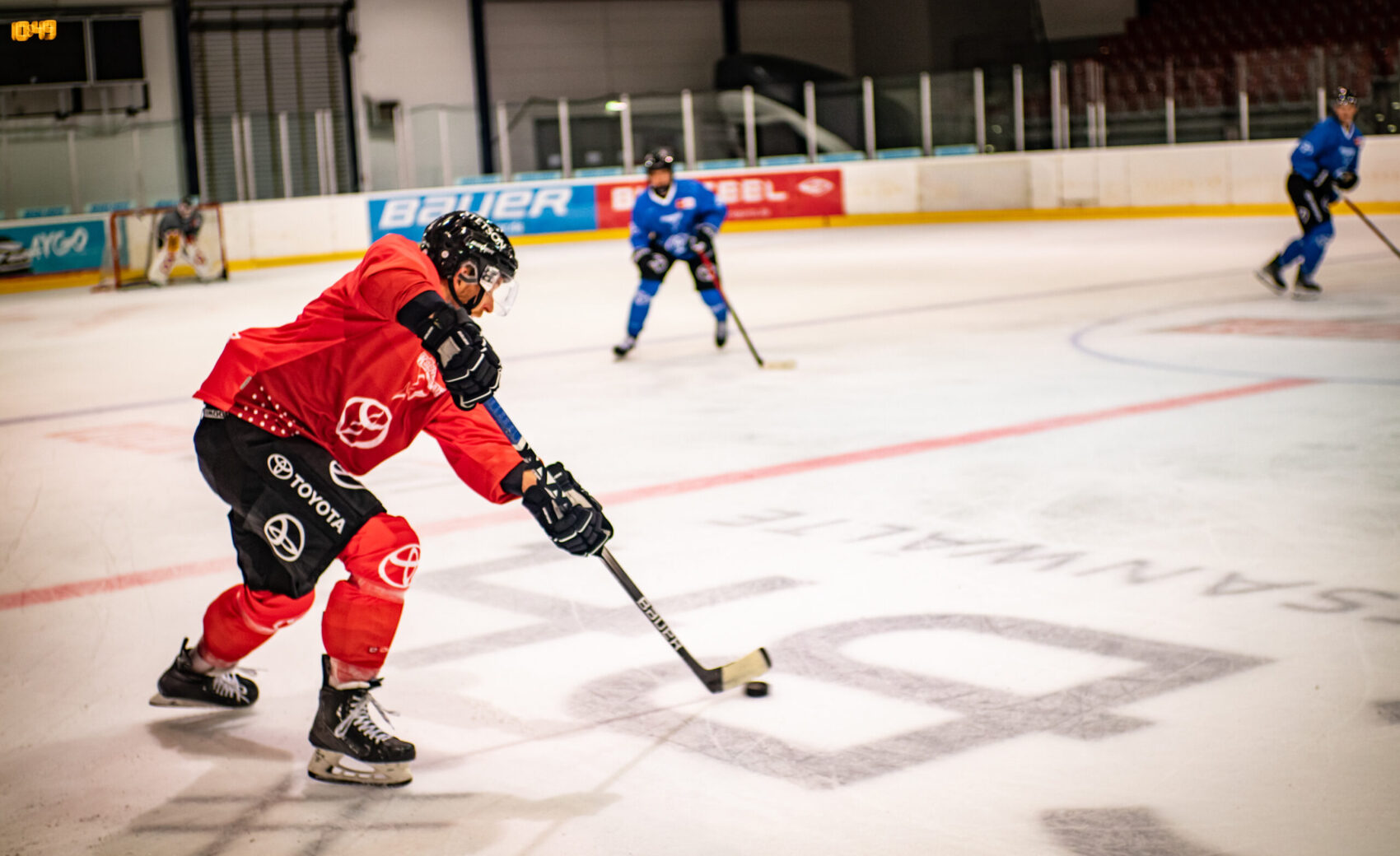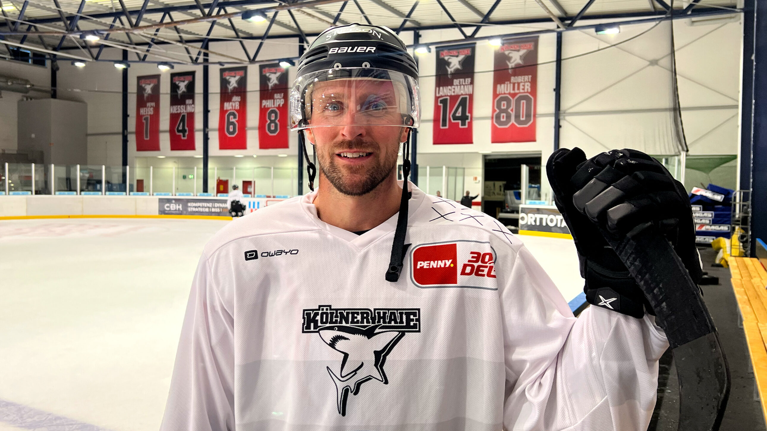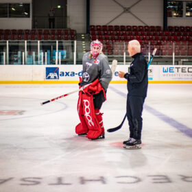 „Wir treffen uns morgens alle zusammen in der Kabine, für die die wollen, gibt es auch ein Frühstück. Dann geht der Tag los mit einer Aktivierung und anschließender Krafteinheit. Danach sind wir für gut anderthalb bis zwei Stunden auf dem Eis und laufen uns anschließend aus. Weiter geht es mit einem gemeinsamen Mittagessen, bevor wir für ein paar Stunden nach Hause fahren. Nachmittags stehen dann die Trainingsspiele an. Auch hier haben wir danach wieder ein Cool-Down, ehe der Trainingstag für uns beendet ist.“