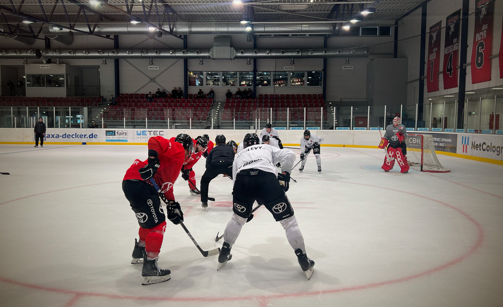 Seit Montagvormittag sind unsere Jungs zurück im Trainingsbetrieb. Pünktlich um 10 Uhr bat Cheftrainer Uwe Krupp zur ersten Einheit des zweiwöchigen Trainingscamps im Haie-Zentrum aufs Eis. Bis zu drei Einheiten stehen für unsere Jungs in dieser Zeit pro Tag an. Vormittags gibt es je eine Kraft- und Eis-Einheit, während nachmittags in den Trainingsspielen gearbeitet wird. Zur Auffüllung der Teams sind dort dann auch Spieler der Junghaie und der Füchse Duisburg als Trainingsgäste mit dabei.
