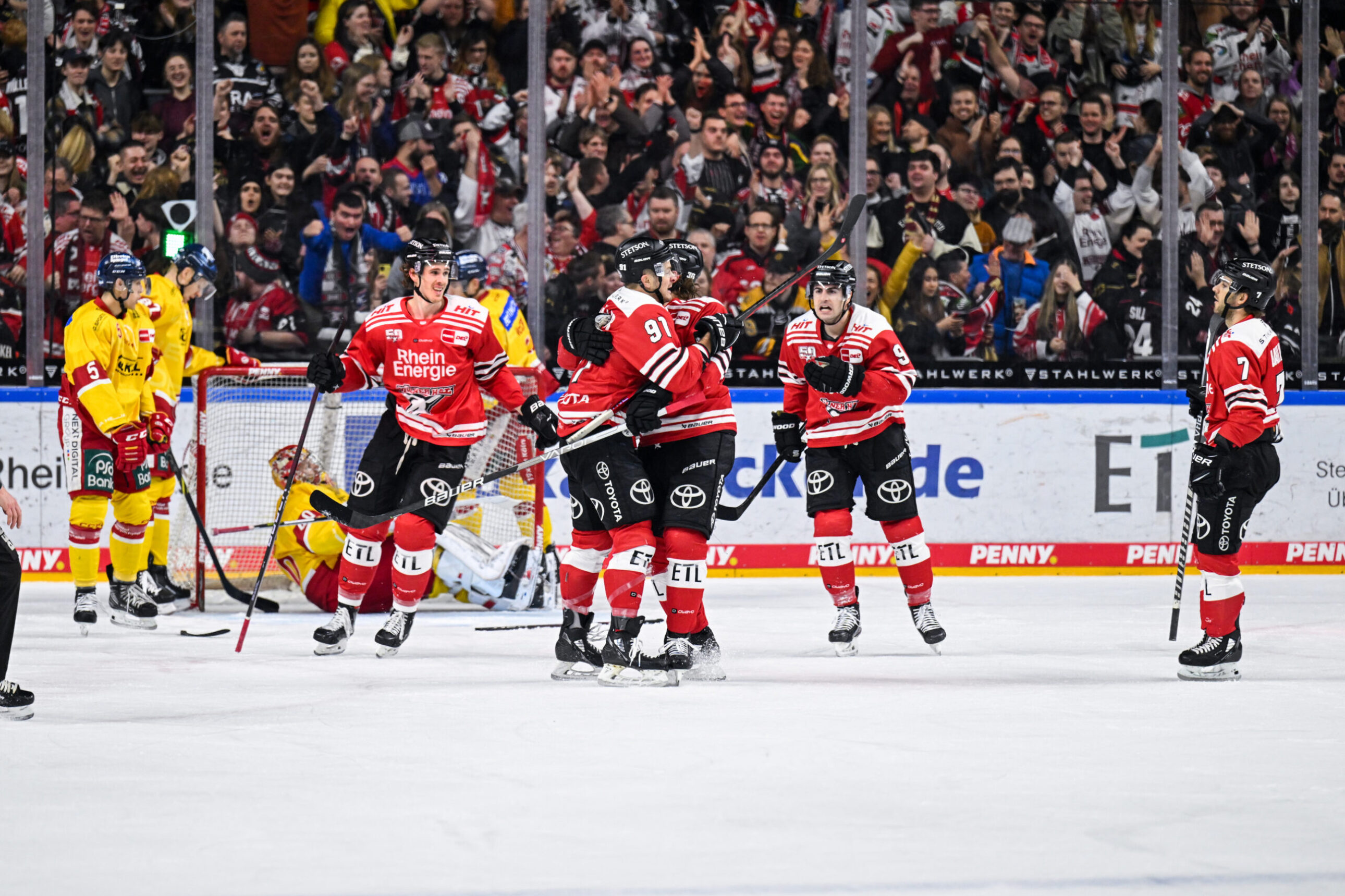 Im 201. direkten Aufeinandertreffen war es endlich so weit: Wir sicherten uns den 100. Derbysieg gegen die Düsseldorfer EG. Nach einem stark umkämpften Spiel und Toren von den damaligen Haiespielern Marcel Müller und Rok Ticar führten wir kurz vor Schluss 2:1. Jedoch schaffte es Düsseldorf noch zum Ausgleich – somit wurde es dann doch nochmal spannend!