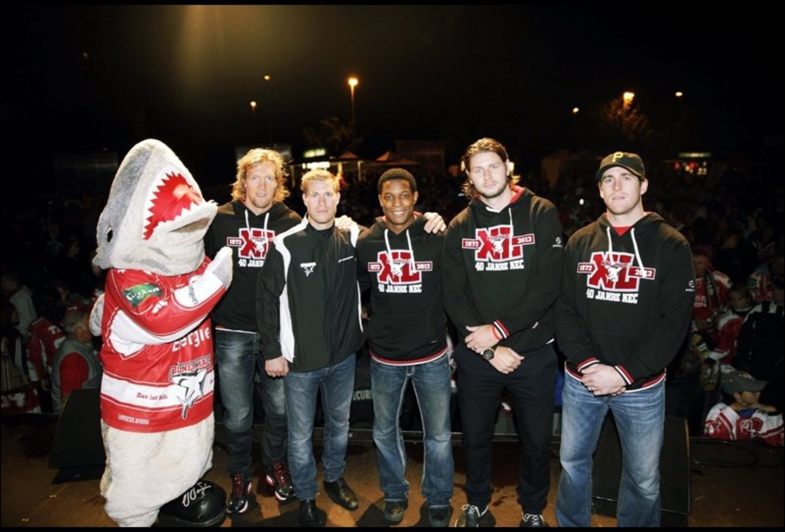 Die Jubiläums-Saison des KEC ist Geschichte. Sie war spannend bis zum Schluss, aufregend, packend, mitreiend und sie endete mit einem Pokal für die Haie, leider in der etwas zu klein geratenen Version. Die Fans haben die Mannschaft groartig unterstützt! Hierfür möchten sich die Haie bei der Saisonabschluss-Feier am Mittwochabend auf dem Parkplatz direkt neben der Trainingshalle (Gummersbacher Strae) bedanken!