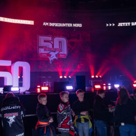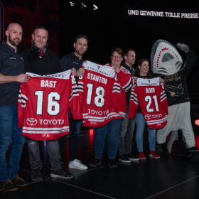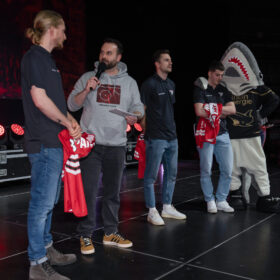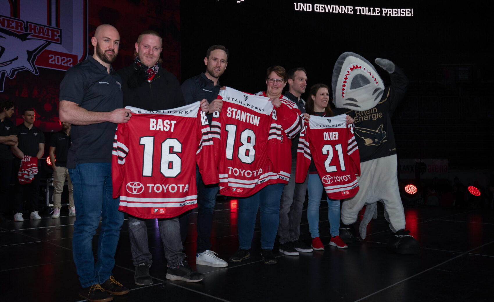 Den Beginn der kurzweiligen Veranstaltung machten Haie-Geschäftsführer Philipp Walter und Cheftrainer Uwe Krupp, die in einer kurzen Talkrunde auf der großen Bühne über die besondere Saison sprachen. „Wir haben unfassbar viel positive Energie von den Fans bekommen. Ich weiß ehrlich gesagt nicht, ob es in Europa einen besseren Platz für Eishockey gibt. Das macht hier unfassbar Bock und das merken die Spieler in der Kabine auch. Wir haben Typen, die Bock haben, vor solch einer Kulisse zu spielen“, merkte Walter an. Und auch Krupp fand für die Unterstützung nur lobende Worte: „Wir haben das im Team alle unheimlich wahrgenommen – wir haben die Stimmung gefühlt und auch die Anzahl der Fans, das war besonders.“
