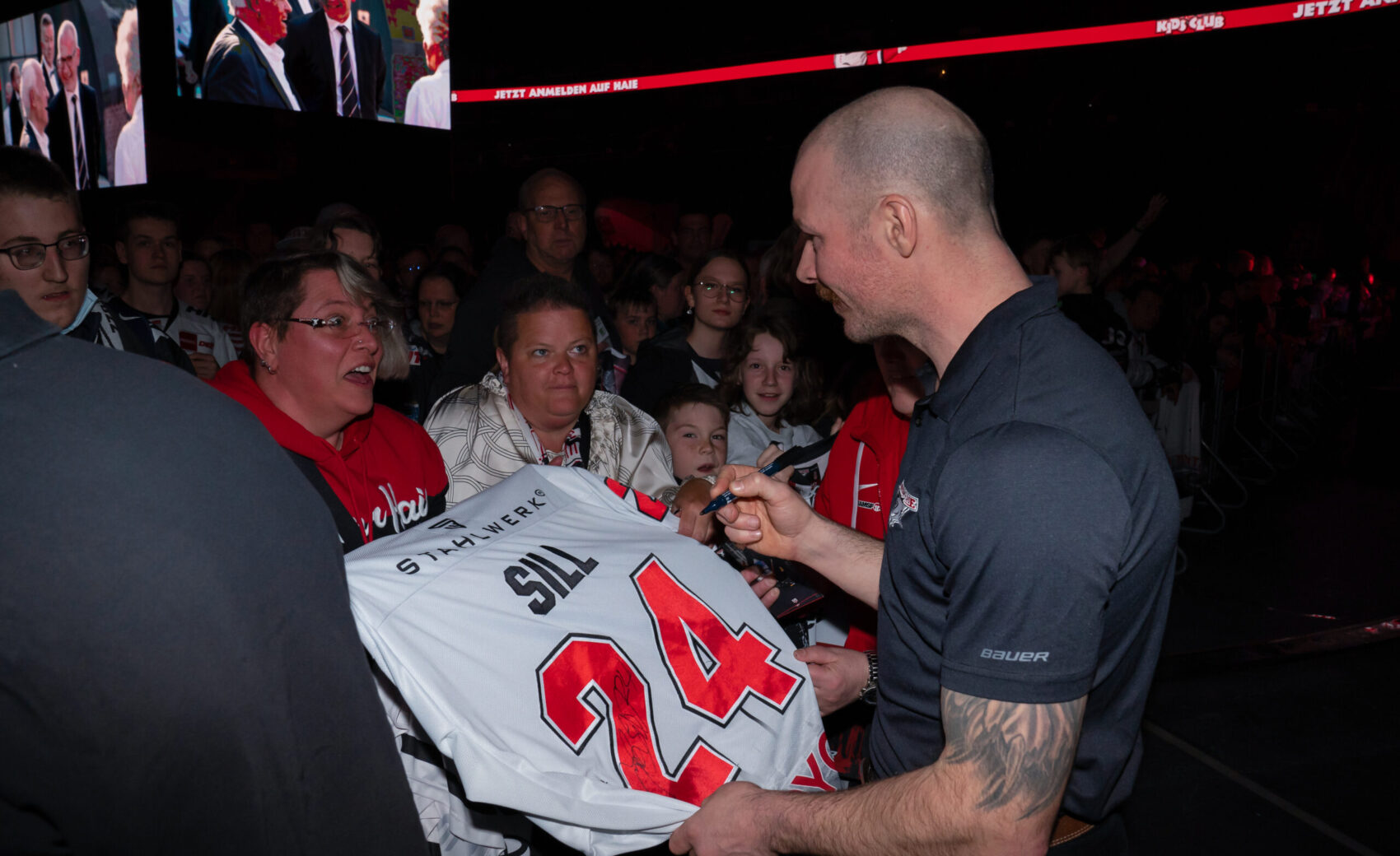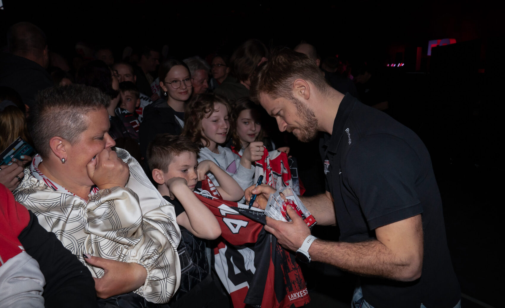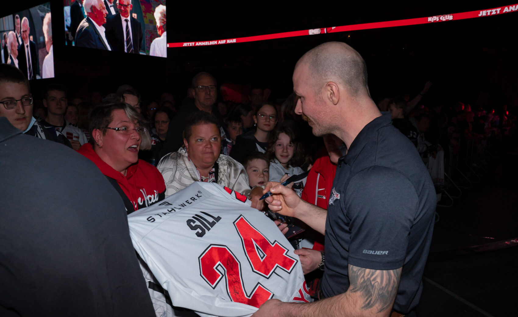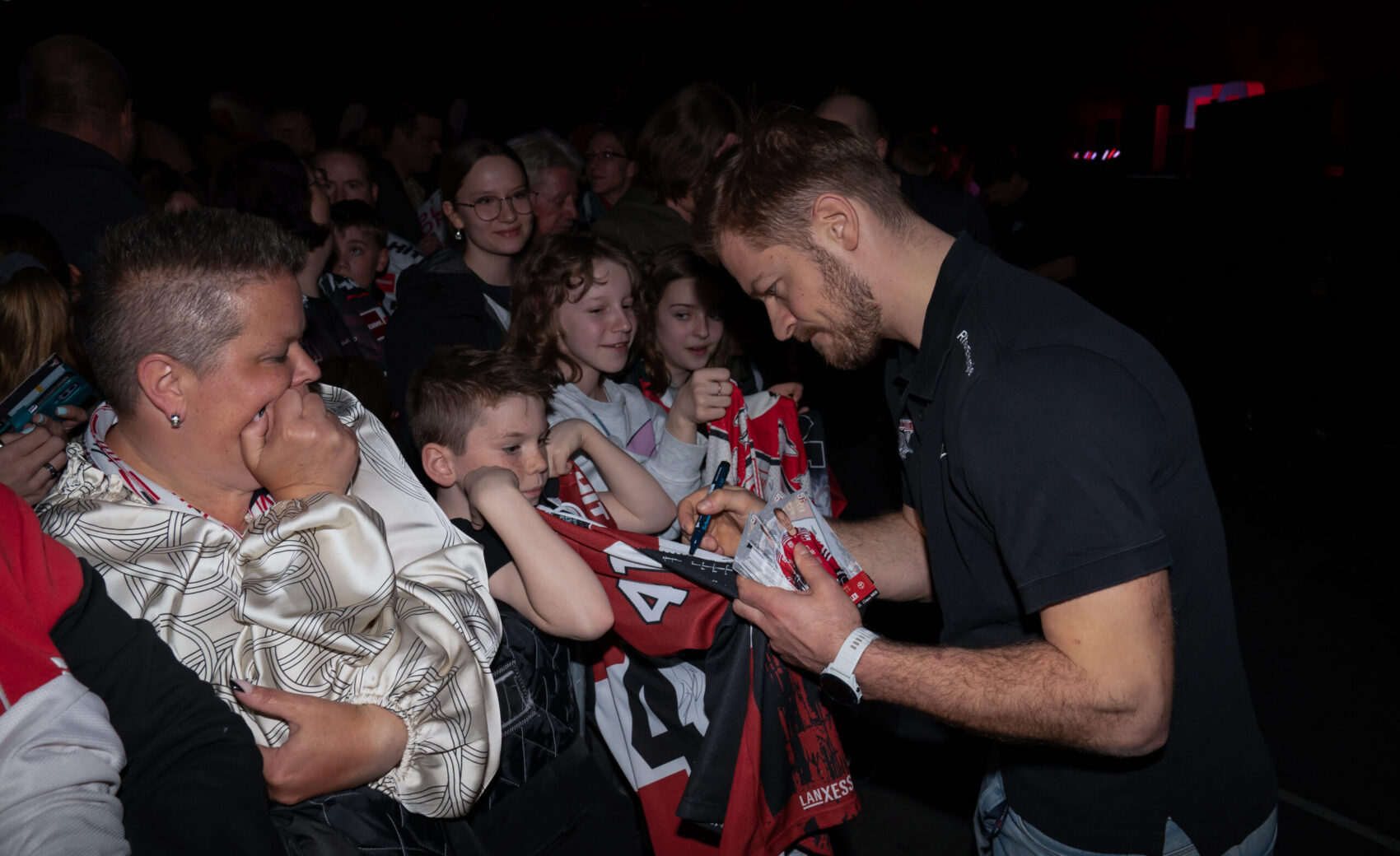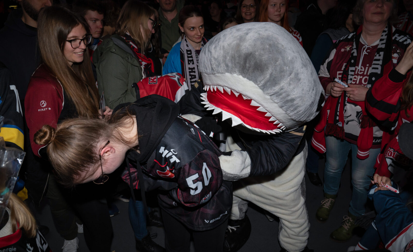 Anschließend folgte der eigentliche Höhepunkt der Veranstaltung – die Spieler begaben sich unter die wartende Menge und erfüllten jeden Wunsch. Ob Autogramm, Selfie oder ein kleiner Schnack – hier gab es Haie zum Anfassen.