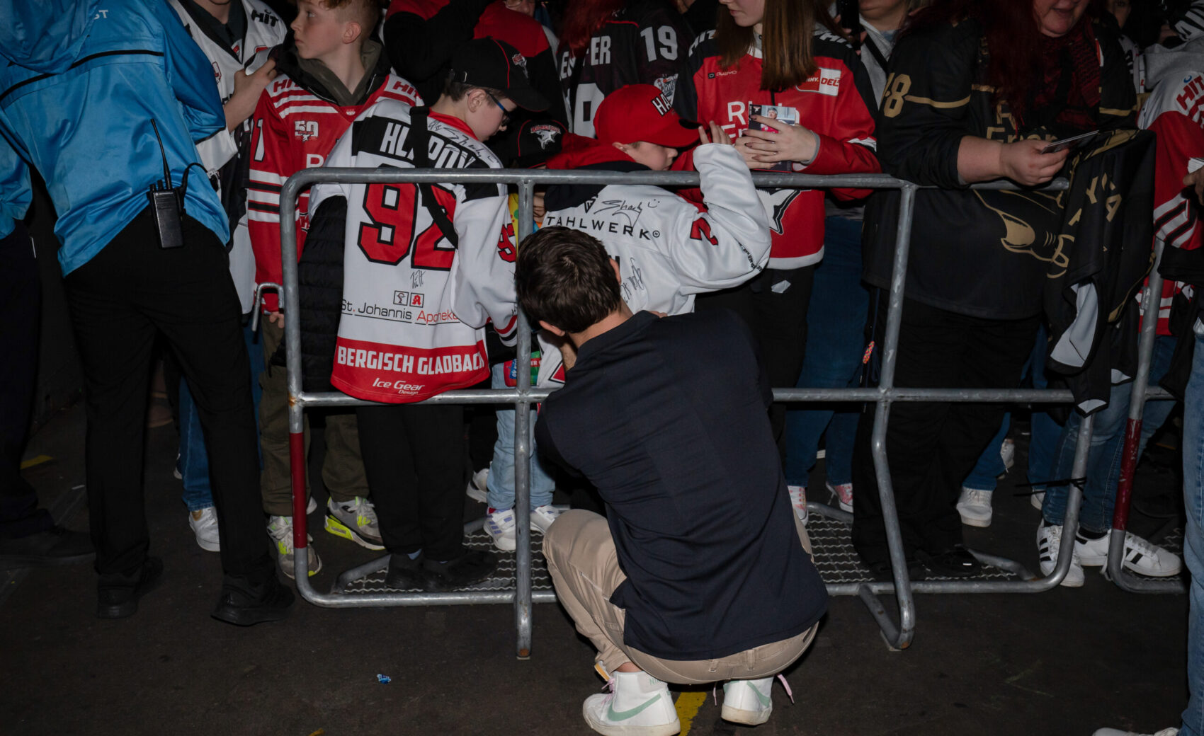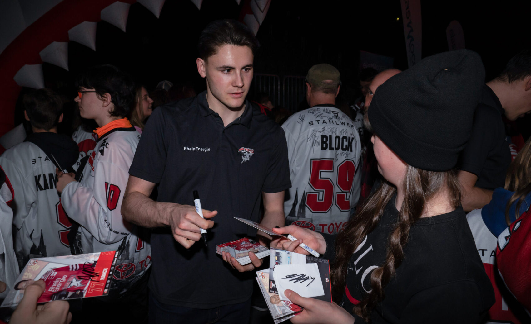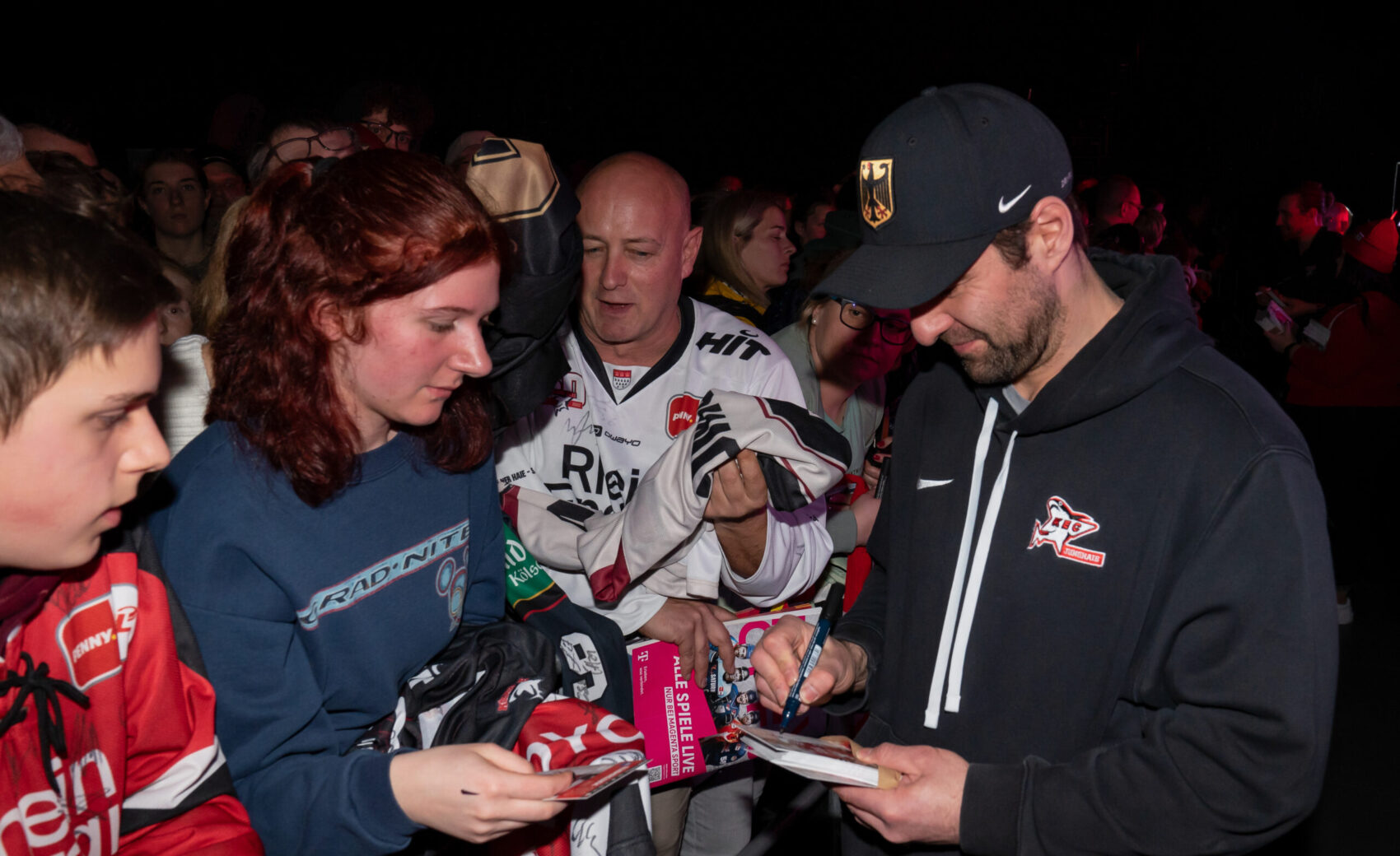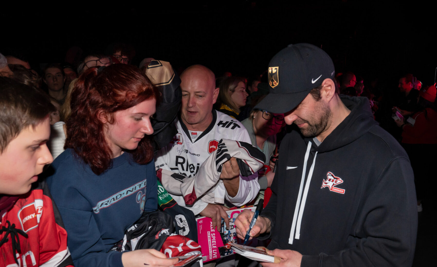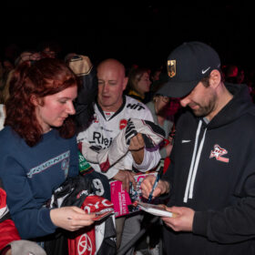 Anschließend folgte der eigentliche Höhepunkt der Veranstaltung – die Spieler begaben sich unter die wartende Menge und erfüllten jeden Wunsch. Ob Autogramm, Selfie oder ein kleiner Schnack – hier gab es Haie zum Anfassen.