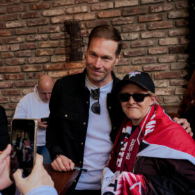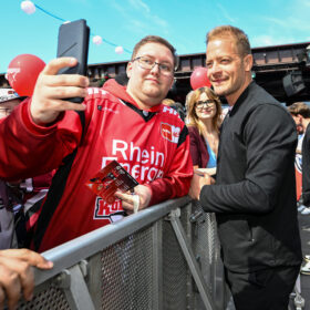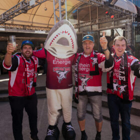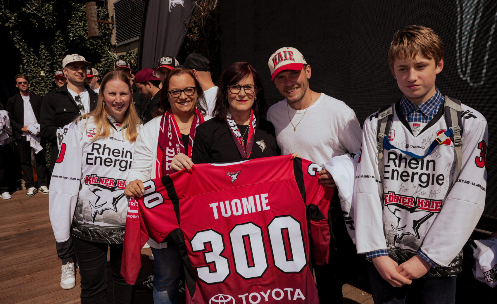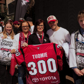 Am Sonntag fand unsere Saisonabschlussfeier in der „Halle Tor 2“ statt – über 3.000 Fans kamen dabei in den Westen Kölns und bereiteten unserer Mannschaft dabei einen tollen Abschluss. Nach u.a. kurzweiligen Gesprächen auf der Bühne, einer emotionalen Video-Botschaft eines scheidenden Hais und dem typischen Selfie von Kari Jalonen mischte sich unsere Mannschaft unter die Fans und verteilte dort jede Menge Autogramme. Wir blicken zurück auf einen besonderen Tag und wollen diesen noch einmal mit Bildern und Video Revue passieren lassen.