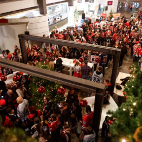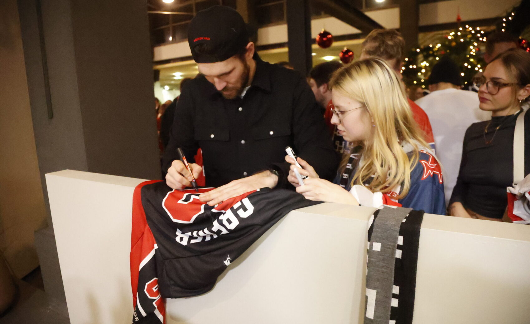 Anfang November machten wir uns mit einem ausverkauften Sonderzug und dementsprechend 800 bestens gelaunten Haie-Fans auf den Weg in die bayrische Landeshauptstadt, wo wir im neueröffneten SAP Garden gegen den EHC Red Bull München spielten. Das Spiel bei einem der Top-Teams der Liga konnten wir vor über 1.000 KEC-Fans mit 2:1 für uns entscheiden – kein Wunder, dass sich Julius Hudacek im Anschluss an den Erfolg zu einer kleinen „Huda-Show“ auf fremden Eis hinreißen ließ. Apropos hinreißen(d): Kurz vor Weihnachten veranstalteten wir zusammen mit euch unsere jährlich stattfindende Fan-Weihnachtsfeier im Henkelmännchen und erlebten dort einmal mehr, was die Haie-Familie so einzigartig macht. Besser als Juhani Tyrväinen hätten wir es nicht zusammenfassen können.