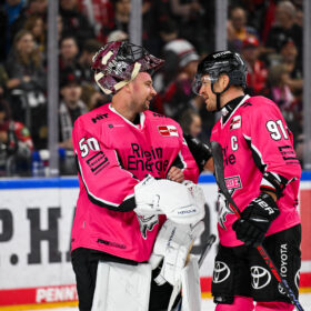 Am 18. Oktober konnten wir in einem ausverkauften PSD Bank Dome in Düsseldorf den ersten von vier Derbysiegen einfahren. Beim 6:3-Sieg führten wir nach 34 Minuten bereits mit 6:1 und sorgten dafür, dass die Stimmung im prallgefüllten Gästeblock nicht hätte besser sein können. Einen Monat später empfingen wir die DEG dann das erste Mal zuhause. Das Setting? Ähnlich wie zuvor in Düsseldorf: Beste Stimmung. Ausverkaufte Arena und: Ein weiterer Haie-Sieg! 5:1 hieß es am Ende – dieser wurde mit einer „Huda-Show“ sowie einem Derbysieger-Foto vor der Nordkurve von Kevin Niedenz entsprechend gefeiert.