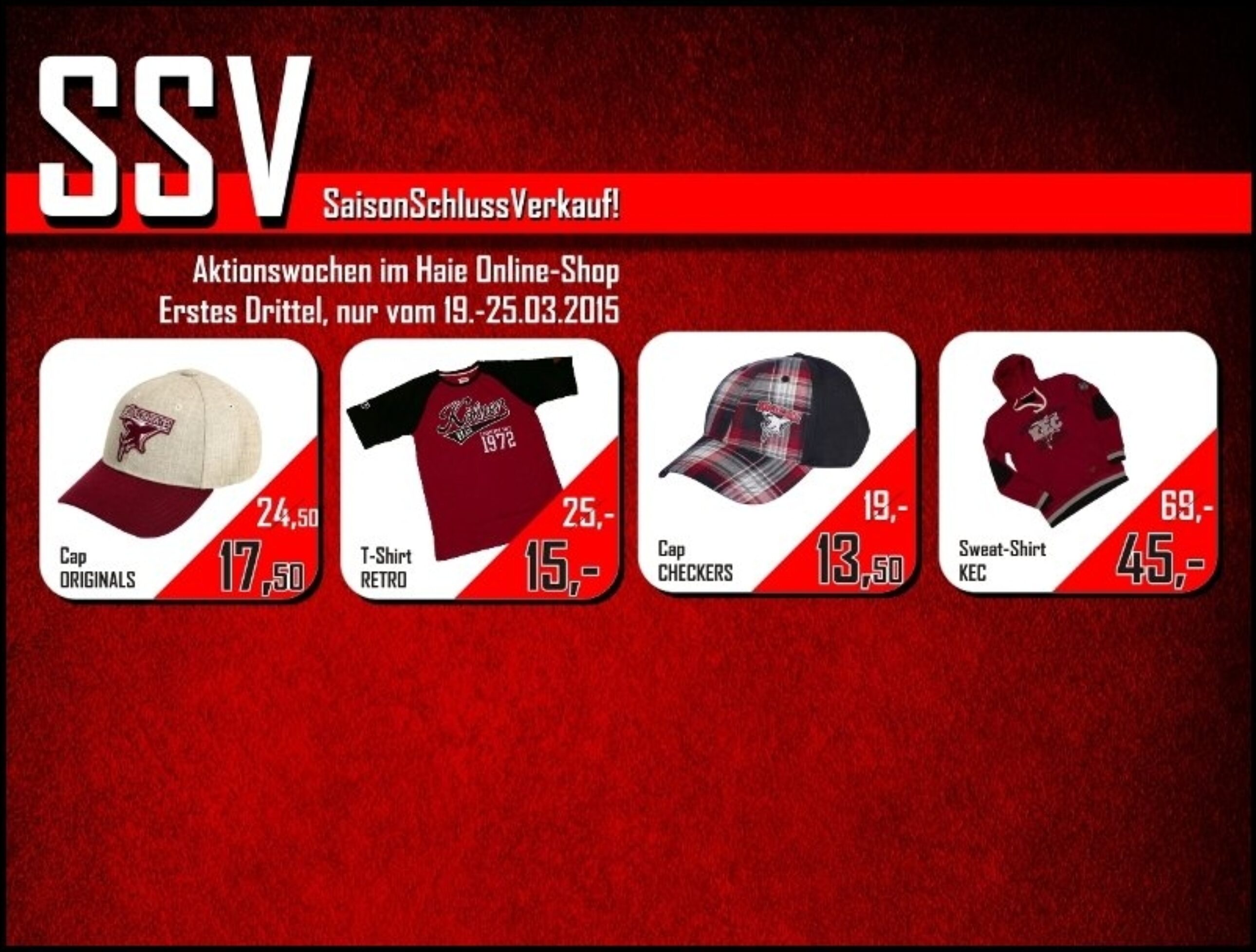 Haie-Fans aufgepasst! Der SaisonSchlussVerkauf im Haie-Shop geht weiter. Und das jetzt auch online! Ab sofort könnt ihr euch ausgewählte Artikel zu Sonderpreisen sichern!